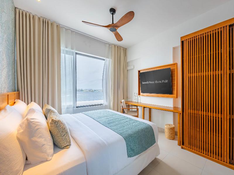 El Barceló Nasandhura Malé destaca por su privilegiada ubicación y amplitud en la vibrante ciudad de Malé. Con vistas a las cristalinas aguas maldivas, este lujoso hotel ofrece impresionantes vistas al océano desde muchas de sus 136 habitaciones, además de contar con 116 apartamentos. A tan solo 120 metros de la terminal de ferry de Henveiru y a un corto trayecto en ferry o diez minutos en coche del Aeropuerto Internacional de Velana, el hotel garantiza una conectividad inigualable. Los huéspedes pueden admirar el singular perfil urbano de Malé o maravillarse con el horizonte del Atolón de Malé desde el único puente de cristal del país. Ya sea que te alojes en una habitación o en un apartamento, los amplios interiores y el cuidado diseño crean una experiencia holística donde el paraíso se une al lujo. La entrada es a las 14:00 h y la salida a las 12:00 h.