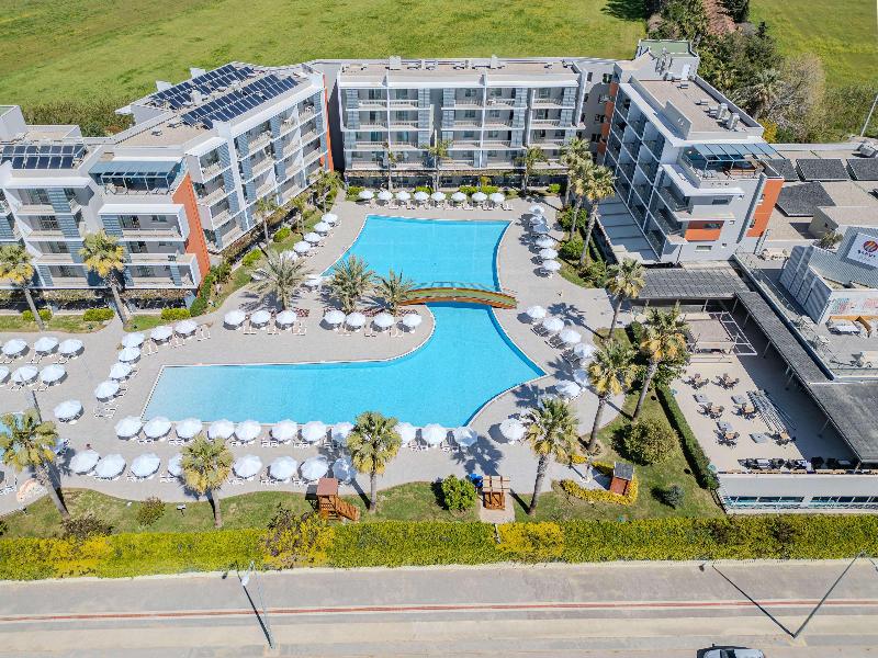 El hotel está bien situado, ligeramente a las afueras de Side, en una zona tranquila pero próxima.