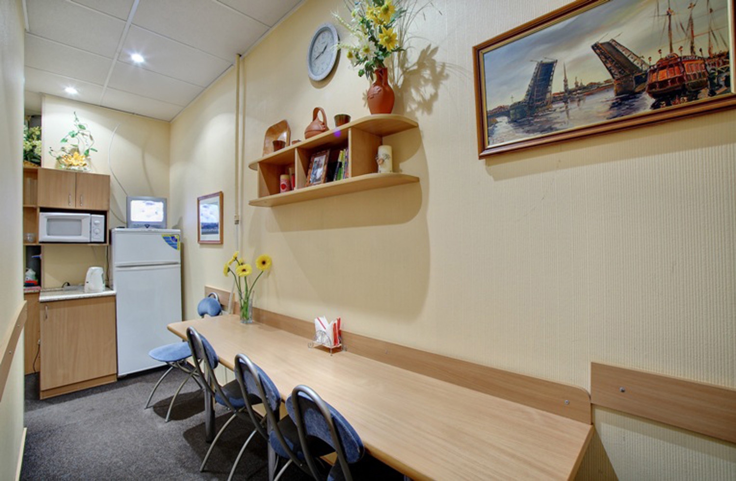 Este mini-hotel est situado en el complejo de apartamentos histrico del filntropo A. A. Antonova, construido en 1913 por el arquitecto V. V. Shauba. Hasta el 1994, la planta baja del edificio albergaba un cine popular llamado Lux, que pas a denominarse Luz despus de la Segunda Guerra Mundial.
