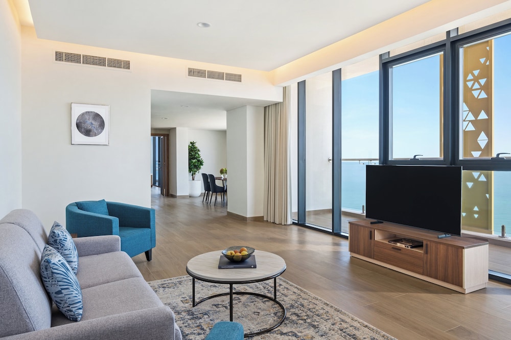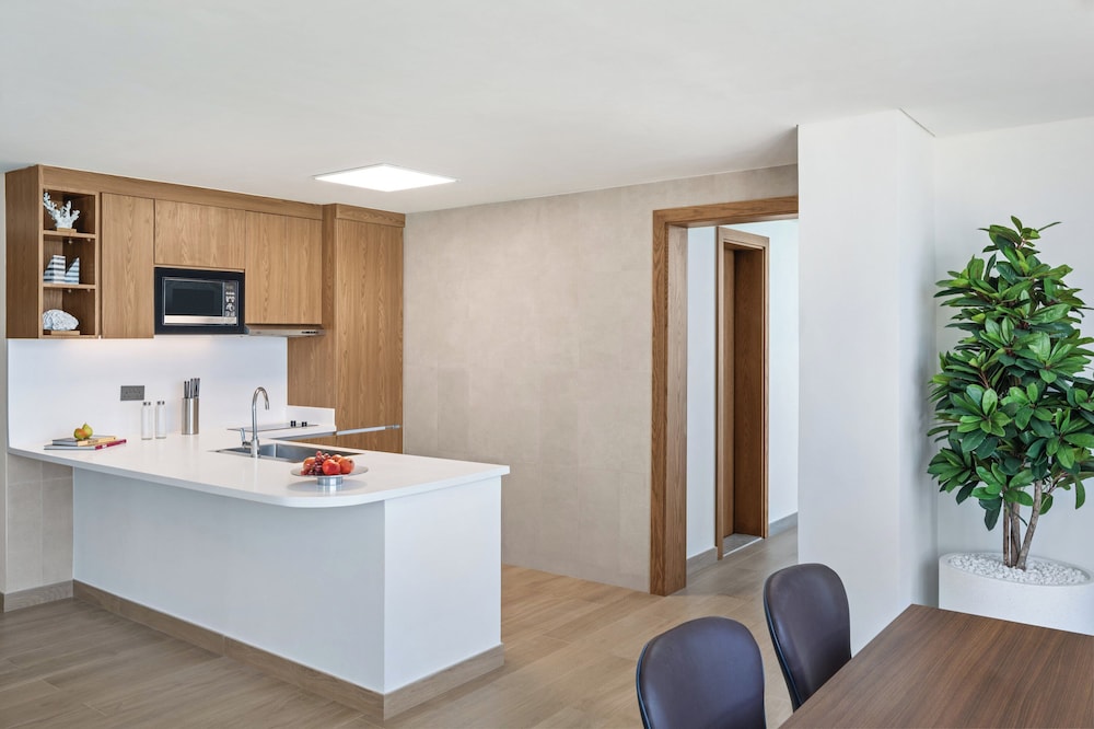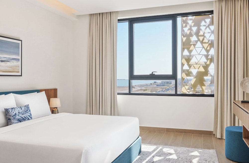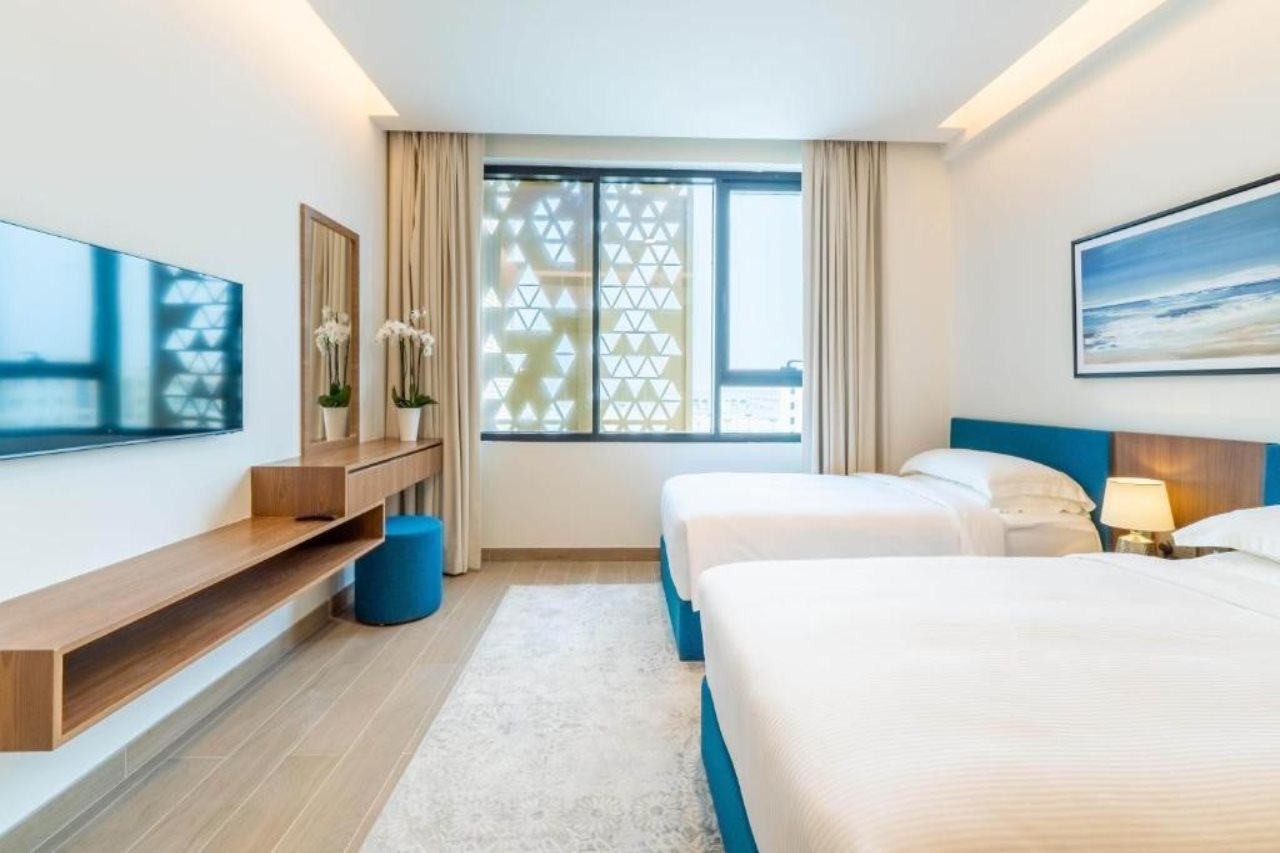 Las instalaciones y servicios incluyen WiFi, bar, servicio de niñera bajo petición (con cargo adicional), cambio de divisas, médico de guardia, restaurantes, gimnasio, piscina al aire libre, sauna, playa privada, salón en el vestíbulo, servicio de lavandería y tintorería rápida, servicio de habitaciones y aparcamiento.Las habitaciones disponen de TV con canales vía satélite, WiFi gratuita, ducha a ras de suelo, albornoces, zapatillas, secador de pelo, caja fuerte en la habitación, nevera, plancha, zona de cocina totalmente equipada, placa eléctrica, microondas, lavadora, set de té y café.Dirección: Area - Al Shouzon Street - Al Marfa - Abu Dhabi - Emiratos Árabes Unidos
