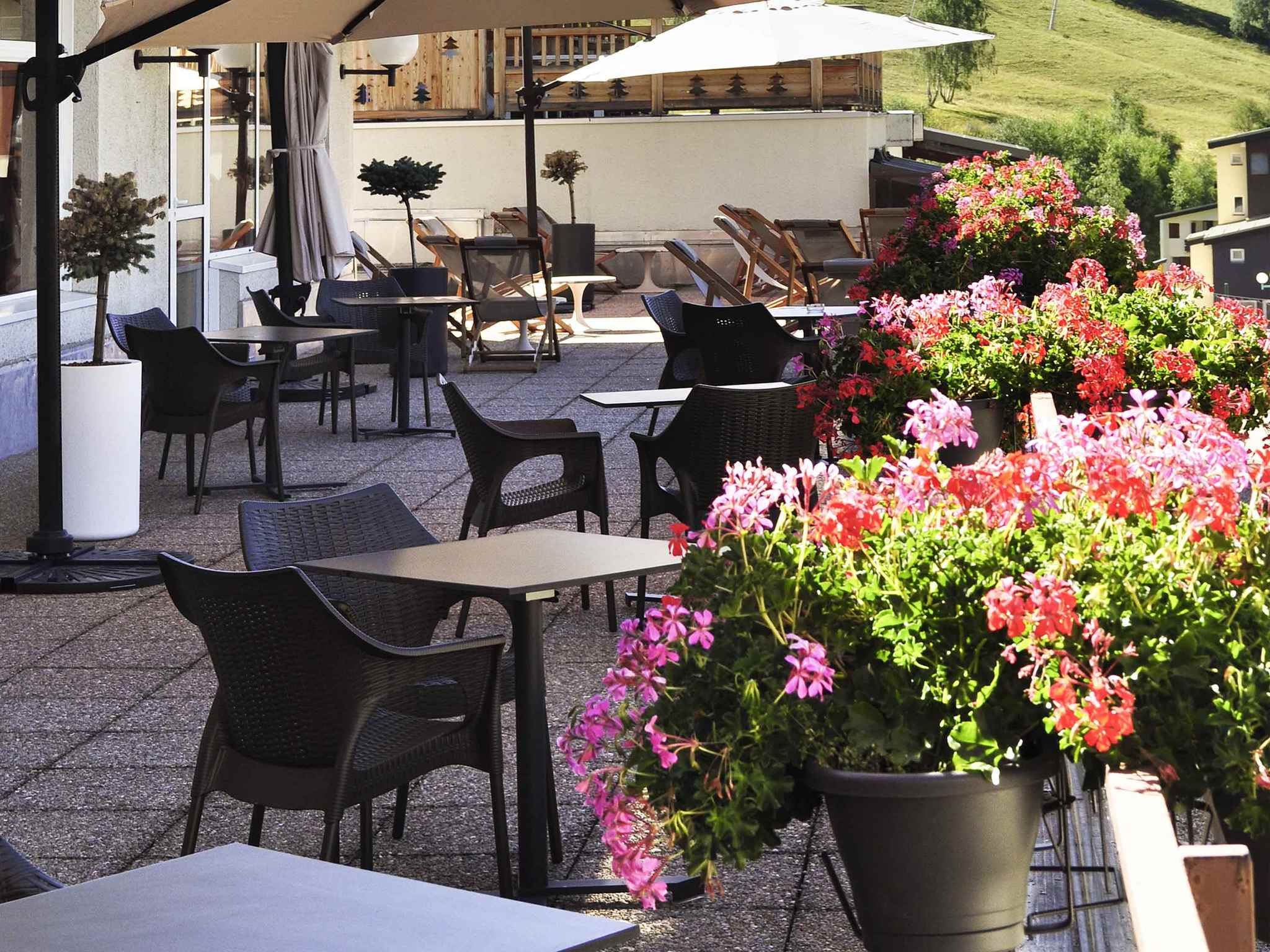 Bar y restaurante con terraza panormica con orientacin sur. En invierno, en las vacaciones de febrero, ofrecemos club infantil y lecciones de esqu. Actividades en invierno y verano: motos de nieve, parapente, tiro con arco, senderismo, bicicletas de montaa, esqu veraniego y natacin. En algunas actividades se aplica tarifa adicional y estn sujetas a disponibilidad.