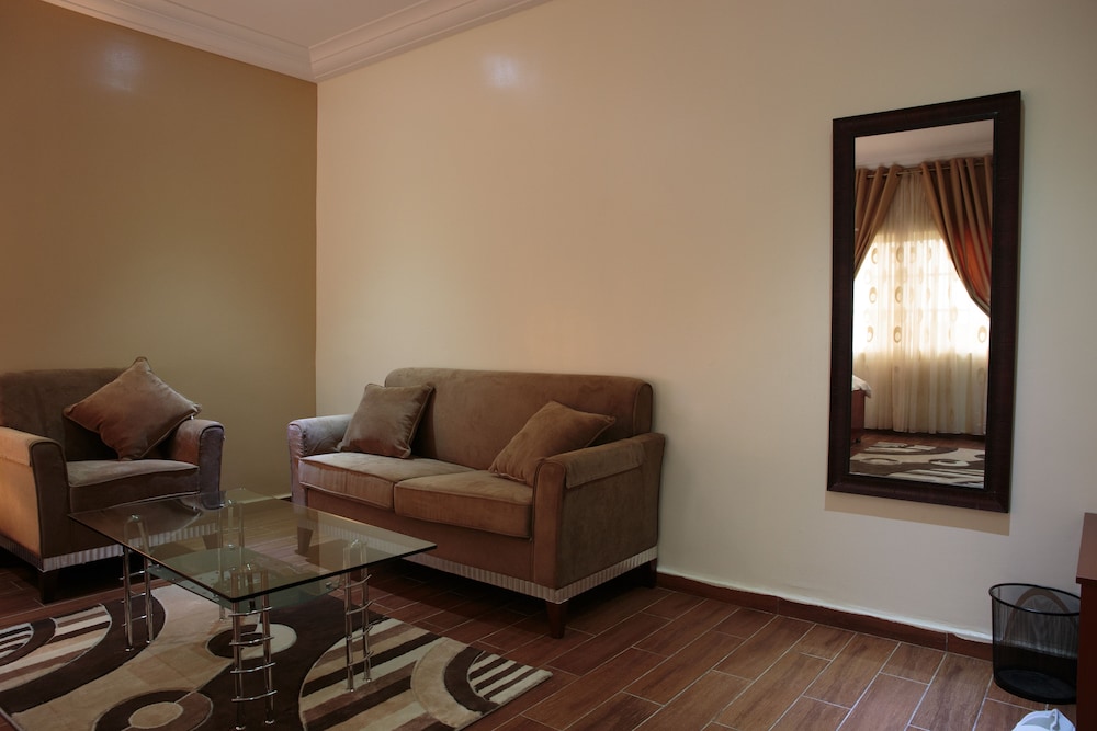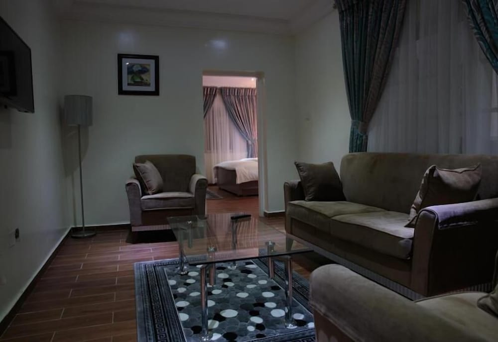 Bella Afrik de Abuya está a 3 min en coche de Centro comercial Jabi Lake y a 9 de Parque de atracciones Wonderland. Además, este hotel se encuentra a 9,4 km de Nigerian National Mosque (mezquita) y a 10,6 km de Abuja Stadium (estadio). Te sentirás como en tu propia casa en cualquiera de las 8 habitaciones con aire acondicionado, frigorífico y televisor de pantalla plana. La conexión a Internet wifi gratis te mantendrá en contacto con los tuyos; también podrás ver tu programa favorito en el televisor con canales por satélite. El cuarto de baño está provisto de ducha y artículos de higiene personal gratuitos. Entre las comodidades, se incluyen escritorio y cafetera y tetera, además de un servicio de limpieza disponible todos los días. Si tienes hambre, pasa por el restaurante de este hotel, que ofrece almuerzos y cenas, o llama al servicio de habitaciones con horario limitado. Apaga la sed con tu bebida favorita en el bar o lounge. Se sirve un desayuno continental todos los días de 7:30 a 9:30 con un coste adicional. Tendrás servicio de tintorería y caja fuerte en recepción a tu disposición. Hay un aparcamiento sin asistencia gratuito disponible.