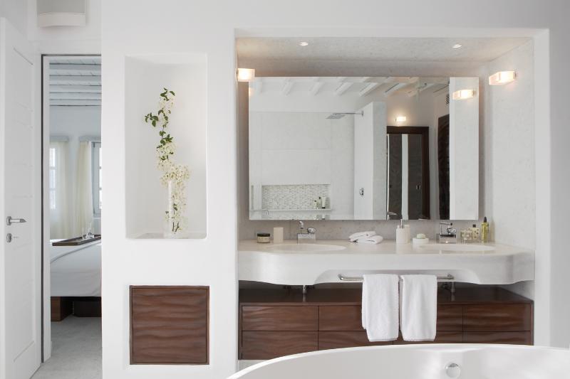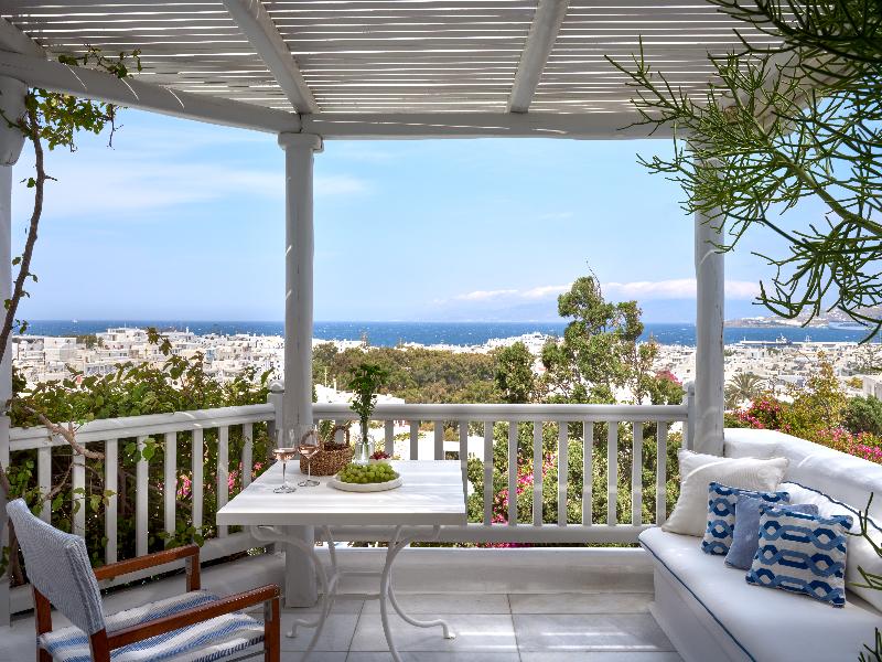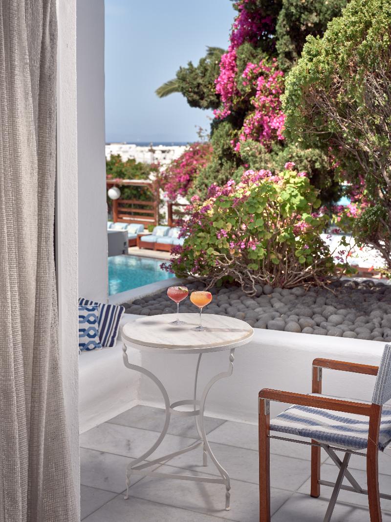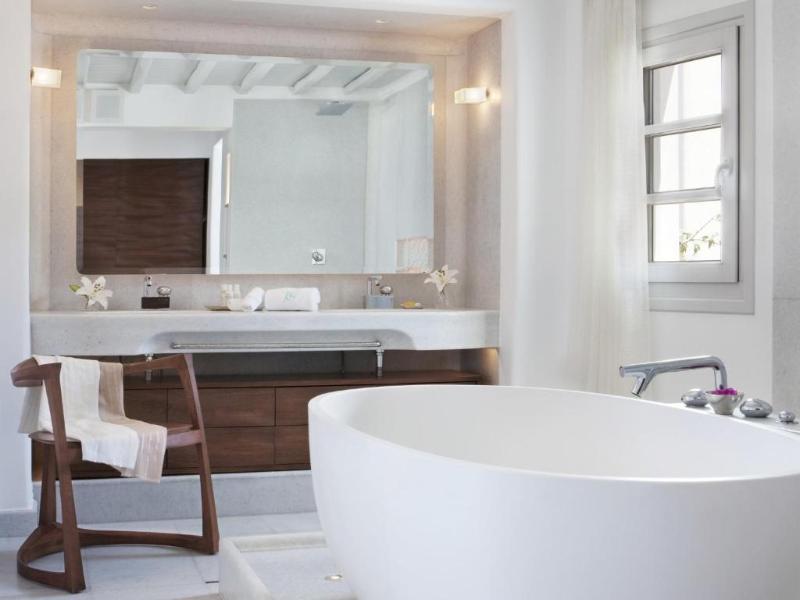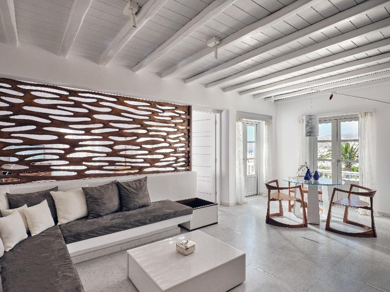 El hotel esta ubicado muy cerca del centro de Mykonos, eso permite ir andando por la noche. El cuarto tenía era muy bien ambientado con una baño magnifico y un balcón con vista a la piscina y el mar...