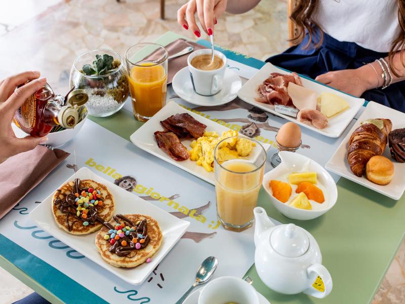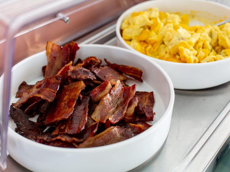1 ) El desayuno en general fue bueno pero pobre, si vienes aproximadamente una hora antes del final, no queda casi nada.