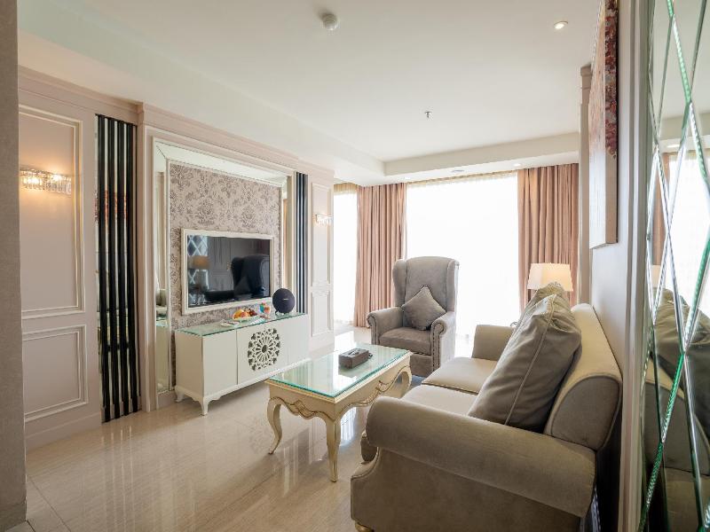 Este encantador hotel se encuentra en Bandung, a solo 3 km del aeropuerto y a 3, 5 km de las principales conexiones de transporte público. Entre las atracciones cercanas se incluyen el Bandung Zoo (3 km), Trans Studio Bandung (8 km) y el Floating Market Lembang Bandung (11 km). Todas las habitaciones cuentan con minibar, wifi gratis, TV de pantalla plana y tetera/cafetera. Las habitaciones superiores ofrecen zonas de estar, mientras que las suites incluyen salas de estar independientes. Hay servicio de habitaciones disponible. El hotel dispone de recepción 24 horas y zonas comunes accesibles. Los huéspedes pueden disfrutar de un luminoso bistró, un elegante bar y salón, una terraza en la azotea con vistas a la ciudad, una piscina infinita al aire libre y una sala de karaoke. Hay aparcamiento disponible, y algunos servicios pueden tener un coste adicional. No se admiten mascotas.