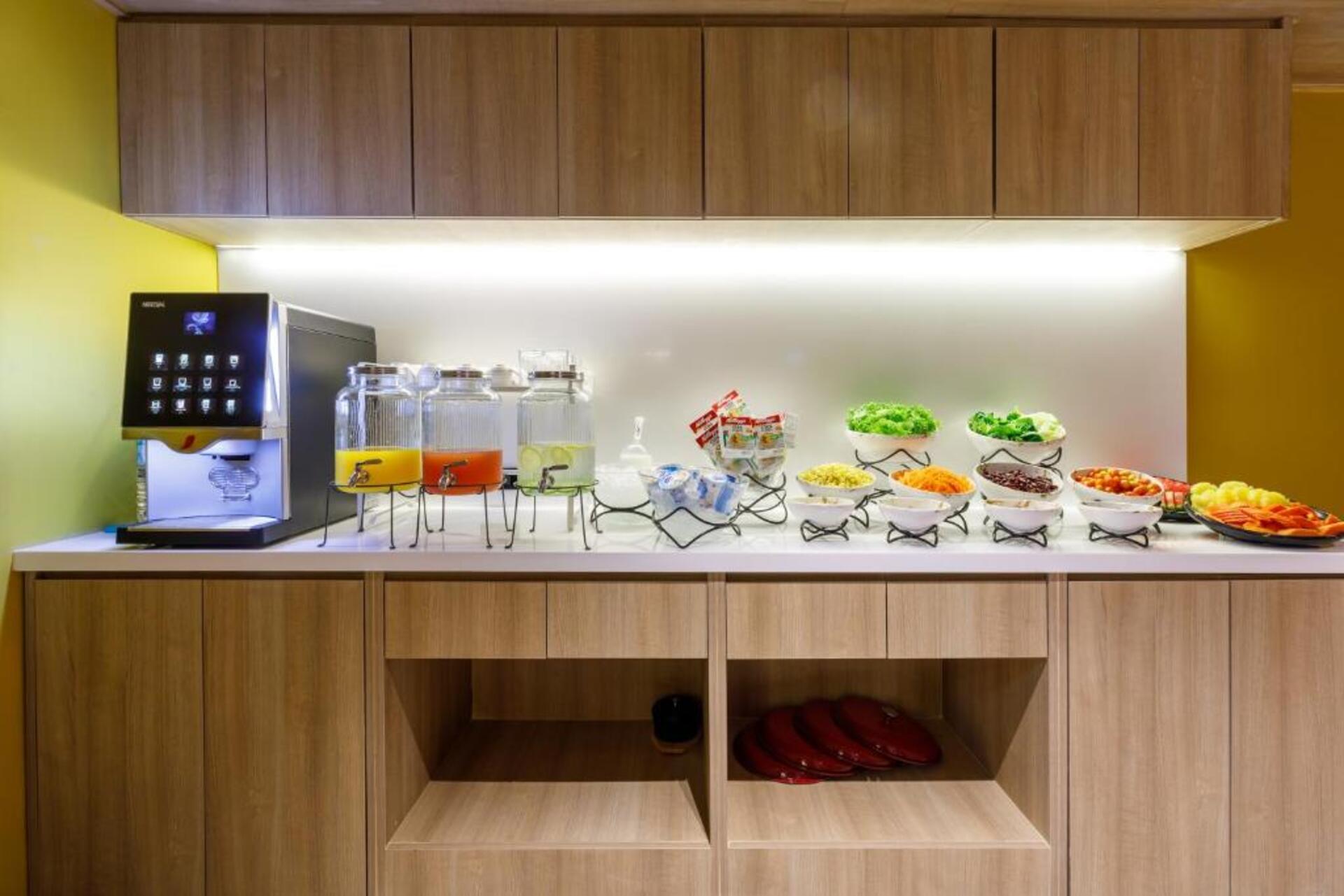 El hotel Benjarong Hotel Bangkok está a unos 450 m de los bares y restaurantes más cercanos. La distancia hasta el aeropuerto es de unos 14 km. Como opciones de entretenimiento, hay en las inmediaciones un teatro (a unos 3,1 km) y un cine (a unos 3,1 km). Este hotel con aire acondicionado está equipado con una recepción abierta las 24 horas del día, un vestíbulo, conexión WiFi, conexión a Internet, un ascensor, un botiquín, aparcamiento (plazas limitadas) y una sala de televisión con SAT-TV. Puede guardar sus objetos de valor en la caja fuerte y su equipaje en la consigna del hotel. Pueden proporcionarse para los más pequeños cunas. Para su ropa, hay a su disposición un servicio de lavandería y planchado. Equipo de planchado también puede ser alquilado en el hotel. Además del botones del hotel y del servicio de conserjería se ocupa de su comodidad. Los huéspedes del alojamiento pueden solicitar que les despierte el personal del hotel. En su hotel de vacaciones se da mucho valor a la sostenibilidad. A este propósito responde, entre otros, la provisión de expendedores de jabón y champú. Los huéspedes del hotel deben depositar un depósito a su llegada al hotel. Se aceptan Euro/Master Card, JCB o Visa como método de pago. Comidas Por la mañana se sirve un desayuno americano de bufé o a la carta. Para el almuerzo se sirven platos de menú o a la carta. Del disfrute culinario se ocupa un restaurante de bufé. La carta de bebidas del hotel incluye agua, refrescos, café y té y cerveza. Distancias