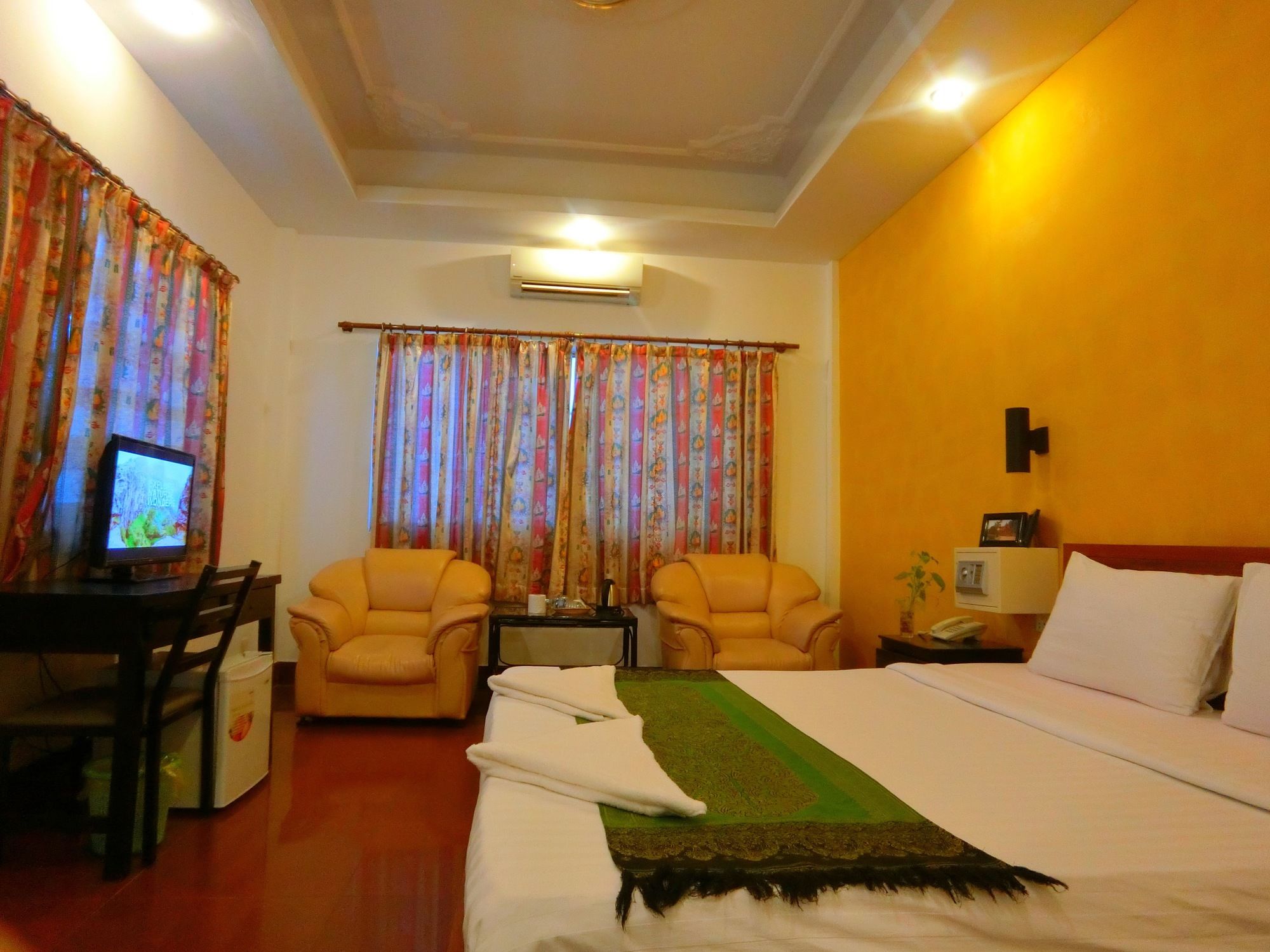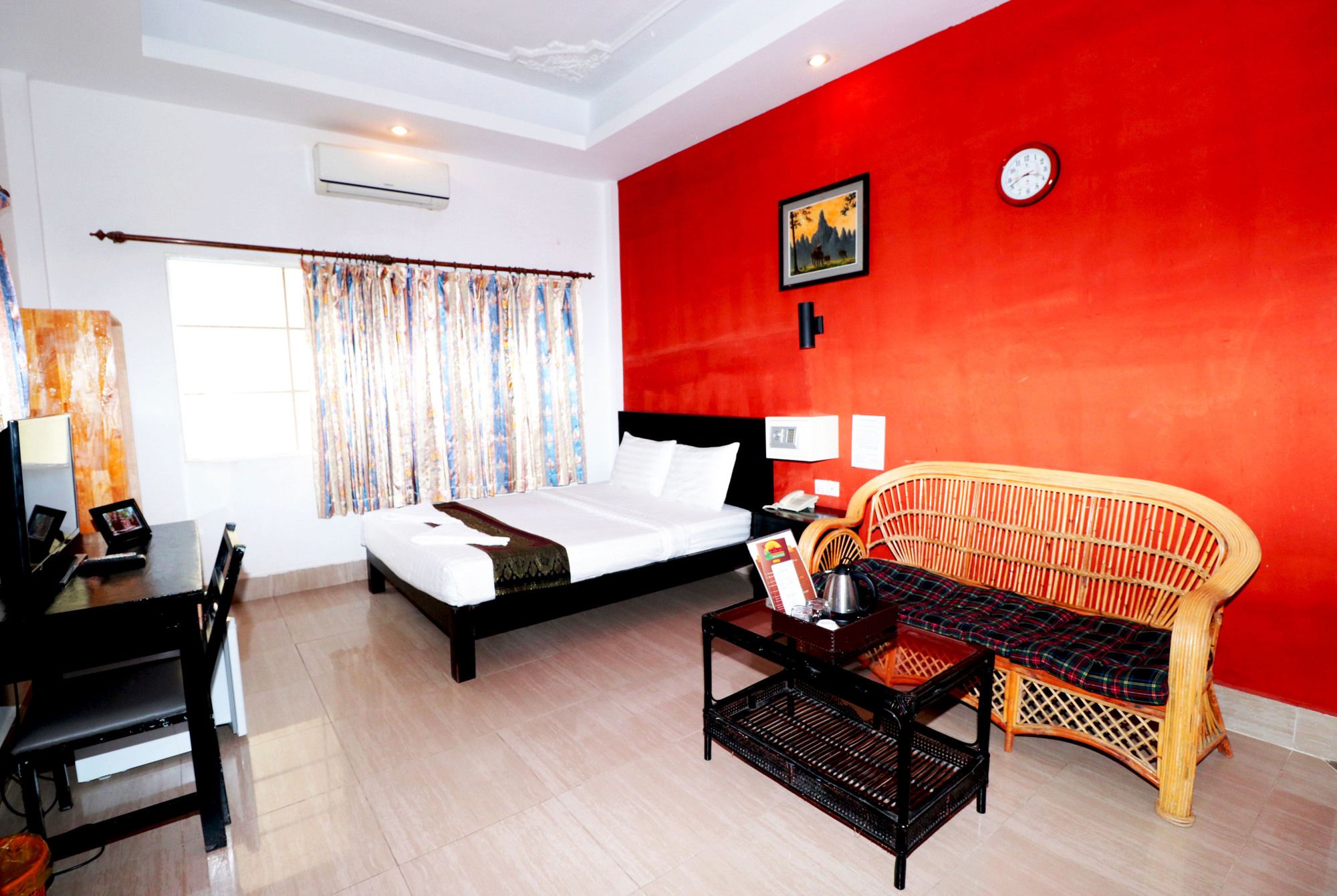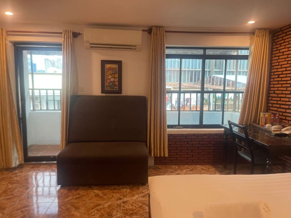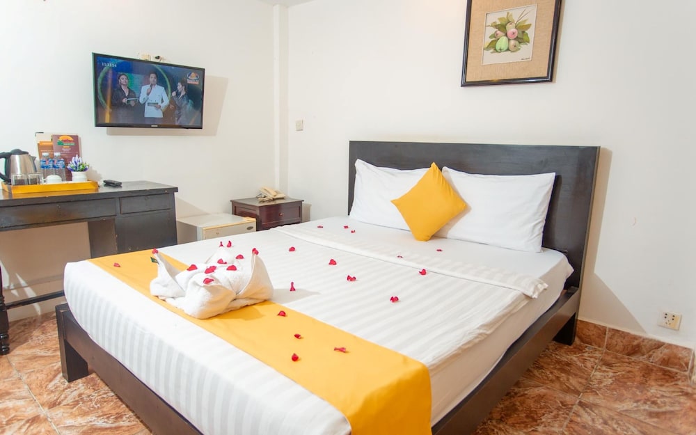 Si te alojas en Best Central Point Hotel, en Daun Penh (Phnom Penh), estarás a pocos minutos de Museo Nacional de Camboya y Palacio Real. Este hotel se encuentra cerca de Mercado de Kandal y de Wat Ounalom.Habitaciones Te sentirás como en tu propia casa en una de las 40 habitaciones con aire acondicionado, frigorífico y minibar. La conexión a Internet wifi gratis te permite comunicarte con los tuyos, y en tus ratos libres tendrás un televisor de pantalla plana con canales por cable para entretenerte. El baño privado con ducha está provisto de artículos de higiene personal gratuitos y secador de pelo. Las comodidades incluyen escritorio y botella de agua gratuita, además de un servicio de limpieza disponible todos los días.Servicios Aprovecha los prácticos servicios que se te ofrecen, como conexión a Internet wifi gratis o servicios de conserjería.Para comer Si tienes hambre, pasa por el restaurante de este hotel, que ofrece desayunos, almuerzos y cenas o utiliza el servicio de habitaciones con horario limitado. Apaga la sed con tu bebida favorita en el bar o lounge.Servicios de negocios y otros Tendrás servicio de tintorería, servicio de recepción 24 horas y depósito de equipaje a tu disposición. Se ofrece servicio de transporte al aeropuerto (ida y vuelta) de pago a petición.