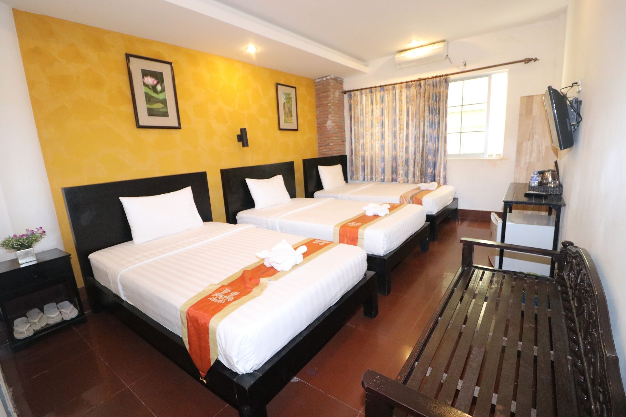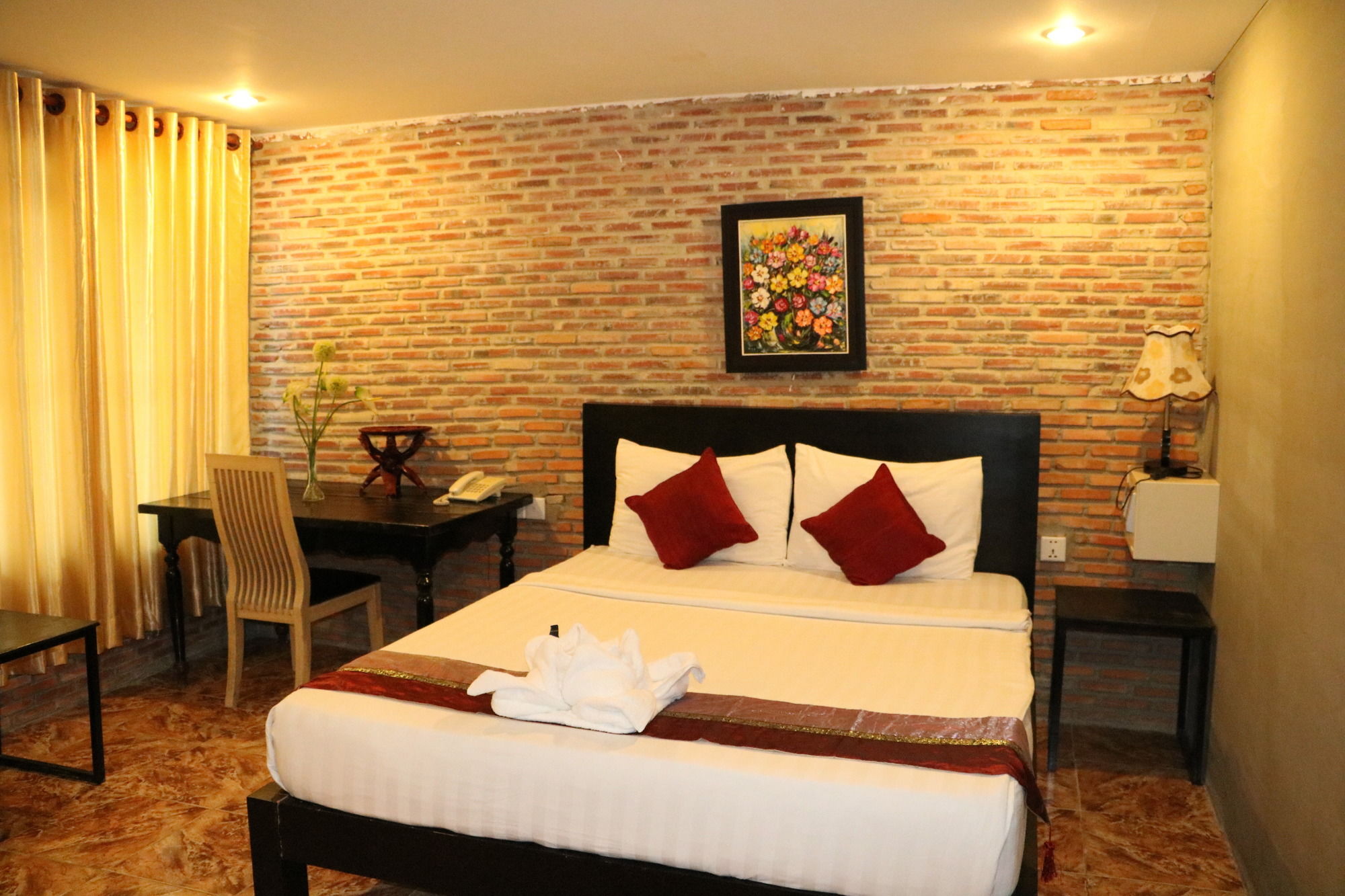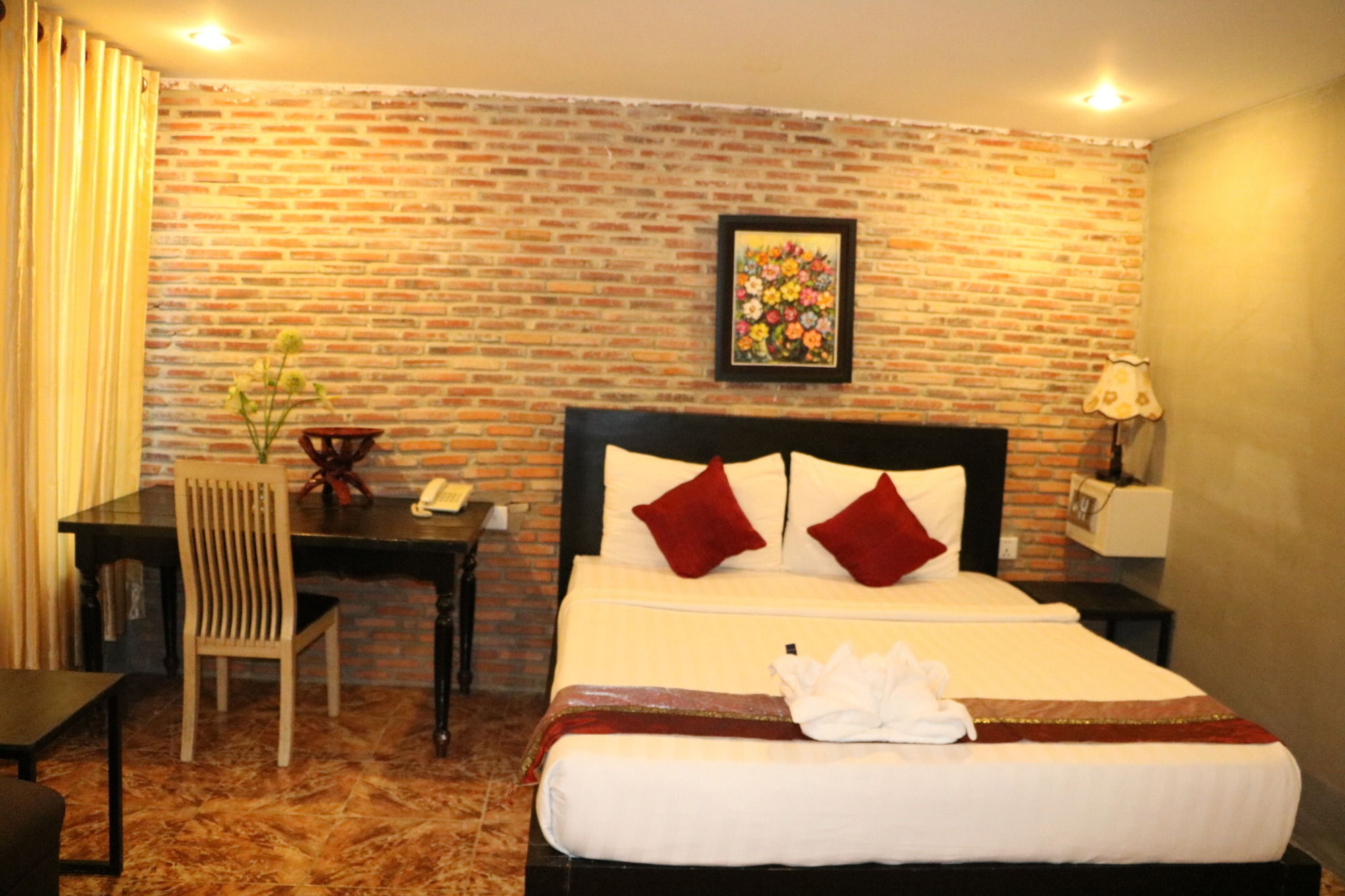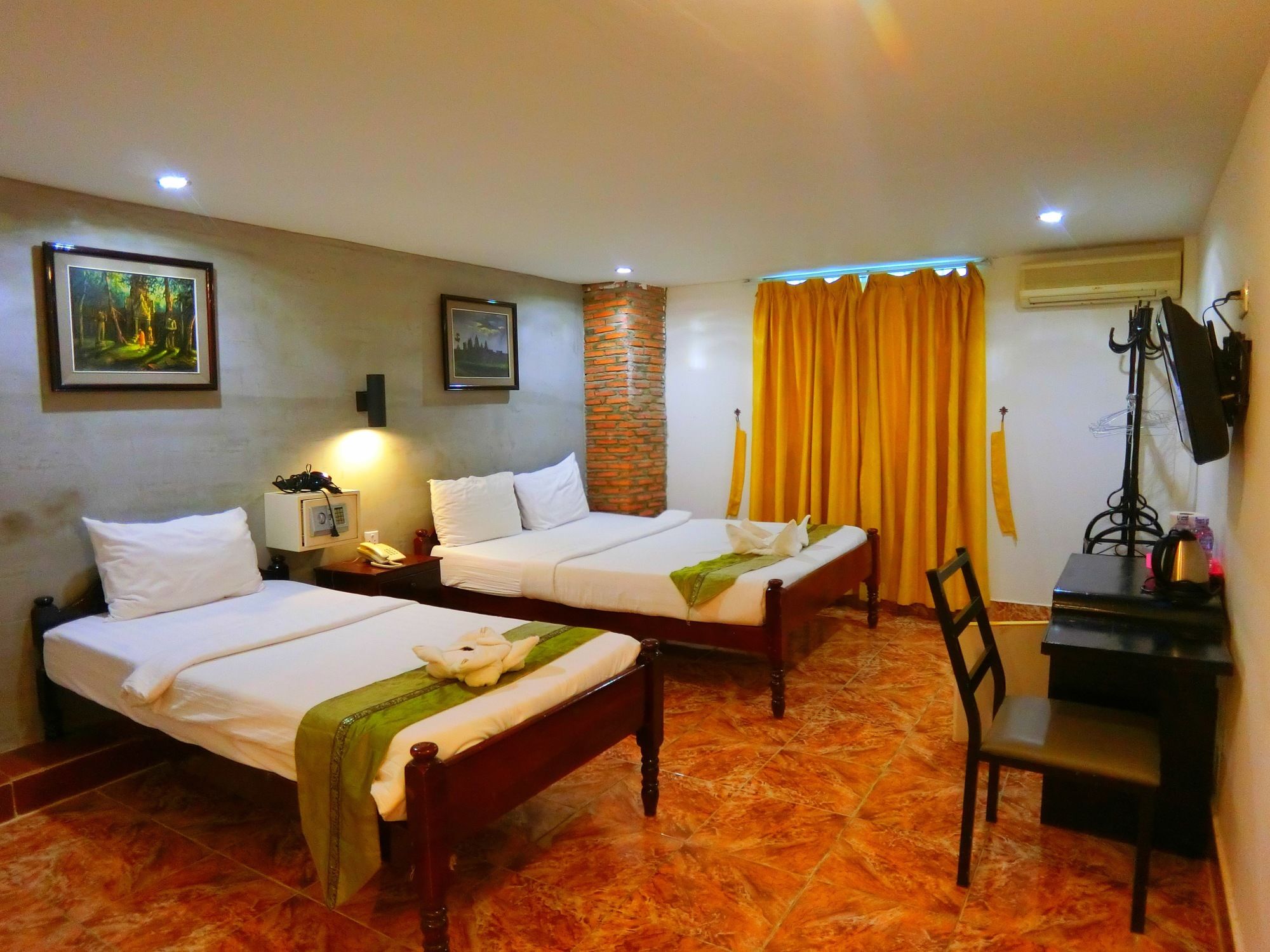 Si te alojas en Best Central Point Hotel, en Daun Penh (Phnom Penh), estarás a pocos minutos de Museo Nacional de Camboya y Palacio Real. Este hotel se encuentra cerca de Mercado de Kandal y de Wat Ounalom.Habitaciones Te sentirás como en tu propia casa en una de las 40 habitaciones con aire acondicionado, frigorífico y minibar. La conexión a Internet wifi gratis te permite comunicarte con los tuyos, y en tus ratos libres tendrás un televisor de pantalla plana con canales por cable para entretenerte. El baño privado con ducha está provisto de artículos de higiene personal gratuitos y secador de pelo. Las comodidades incluyen escritorio y botella de agua gratuita, además de un servicio de limpieza disponible todos los días.Servicios Aprovecha los prácticos servicios que se te ofrecen, como conexión a Internet wifi gratis o servicios de conserjería.Para comer Si tienes hambre, pasa por el restaurante de este hotel, que ofrece desayunos, almuerzos y cenas o utiliza el servicio de habitaciones con horario limitado. Apaga la sed con tu bebida favorita en el bar o lounge.Servicios de negocios y otros Tendrás servicio de tintorería, servicio de recepción 24 horas y depósito de equipaje a tu disposición. Se ofrece servicio de transporte al aeropuerto (ida y vuelta) de pago a petición.
