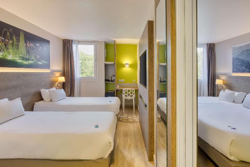 Nuestro hotel se encuentra en Lattes, a 5 minutos en coche de las playas más cercanas y del centro de Montpellier. Cuenta con una piscina exterior climatizada, una pista de petanca, un gimnasio y un solárium. El aparcamiento privado en las instalaciones es gratuito, al igual que la conexión wifi de alta velocidad en todo el establecimiento. Las habitaciones de este hotel están equipadas con aire acondicionado y TV de pantalla plana vía satélite con canales beIN Sports. También incluyen un escritorio y un baño privado con ducha. Algunas disponen de cafetera Nespresso. Se sirve un desayuno buffet que se puede tomar en la terraza. El restaurante del Hotelio Montpellier Sud abre para cenar de lunes a jueves y ofrece un menú de aperitivos y tapas todos los días. También hay una máquina de pasta disponible las 24 horas. El bar Le Tempo prepara cócteles. Hay un salón compartido con chimenea, una biblioteca y juegos infantiles. El establecimiento también dispone de una sala de reuniones. Se ofrece servicio de alquiler de bicicletas en el hotel, con el que podrás llegar al mar en menos de 20 minutos. También hay un almacén para bicicletas y kits de reparación. El polígono industrial de Tournezy está a 10 minutos en coche. El Hotelio Montpellier Sud se encuentra a 56 kilómetros de Nimes y a 60 kilómetros de Cap d'Agde. El Jardín Botánico de Montpellier está a cuatro kilómetros. El aeropuerto más cercano es el de Montpellier-Mediterráneo, a solo ocho kilómetros del establecimiento.