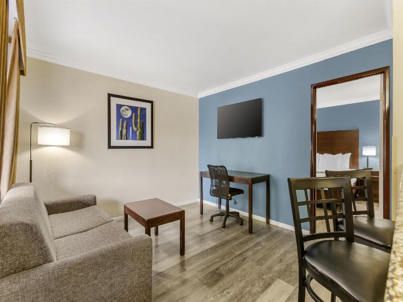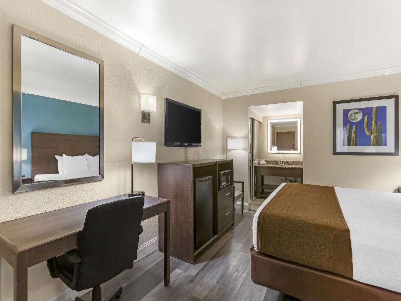 Convenientemente ubicado junto a Oracle y Orange Grove Roads en las laderas de Tucson, cerca de la University of Arizona, Biosphere II, Arizona-Sonora Desert Museum y el Tucson Convention Center, el Best Western® InnSuites Tucson Foothills Hotel & Suites ofrece una excelente ubicación, cómodas habitaciones y tarifas inmejorables. Los aficionados al deporte que se alojen en este hermoso hotel en Tucson estarán a solo minutos de los partidos de fútbol americano de la University of Arizona, y los amantes de la historia disfrutarán del Tohono Chul Park, el Arizona-Sonora Desert Museum y Old Tucson Movie Studios. Tucson también alberga varios eventos anuales populares, como el Tucson Gem, Mineral and Fossil Showcase, un evento imperdible. Y para los amantes de las compras, el Tucson Mall está a solo una milla de este hotel y el Foothills Mall a solo milla y media. Dentro de este encantador hotel en Tucson, encontrarás cómodas y espaciosas habitaciones, cada una con televisores de pantalla plana, televisión por cable con HBO®, acceso gratuito a Internet de alta velocidad y camas Cloud 9 con triple sábanas. Otros servicios del hotel incluyen un desayuno caliente gratuito cada mañana, recepciones gratuitas por la noche, una piscina reluciente y pistas de tenis. Este hotel en Tucson también admite mascotas. Los huéspedes de negocios también apreciarán las instalaciones de negocios y el espacio para reuniones en el hotel con capacidad para 125 personas, una variedad de servicios empresariales y la cercanía al Tucson Convention Center y a empresas locales, como Davis Monthan Air Force Base, Tucson Medical Center Tucson Heart Hospital, Northwest Medical Center y el University Physicians Hospital. Reserva tu estancia en línea hoy mismo y ahorra con el Best Western® InnSuites Tucson Foothills Hotels & Suites, el hotel más relajante y acogedor de Tucson. Disfruta tu estancia.