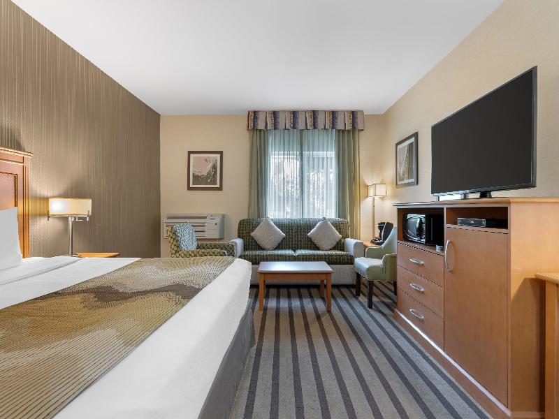 El Best Western King George Inn & Suites ofrece un servicio excelente y una ubicación privilegiada en el centro de Surrey. Rodeado de belleza natural y cerca de atracciones locales, restaurantes y tiendas, nuestro hotel es uno de los favoritos tanto para viajeros de negocios como de placer. Nos encontramos cerca del parque industrial y centros de negocios, lo que nos convierte en una opción ideal para empleados de empresas como WorkSafe BC y BC Hydro. Los huéspedes también apreciarán nuestra proximidad a zonas residenciales, escuelas y el Surrey Memorial Hospital. Disfruta de un desayuno continental caliente de lujo gratuito con gofres, huevos, carne, yogur, cereales, zumo y café 100% Arábica. También ofrecemos opciones de estancias prolongadas. Explora atracciones cercanas como el Surrey Arts Centre o asiste a eventos populares como el Annual Vaisakhi Parade y el Surrey International Music Marathon. Para los amantes del golf, los campos de golf Eaglequest y Morgan Creek están cerca. Varios salones para banquetes, incluidos el Grand Taj y el Crystal at York, son fácilmente accesibles desde nuestro hotel, lo que nos convierte en una opción ideal para los invitados a bodas.