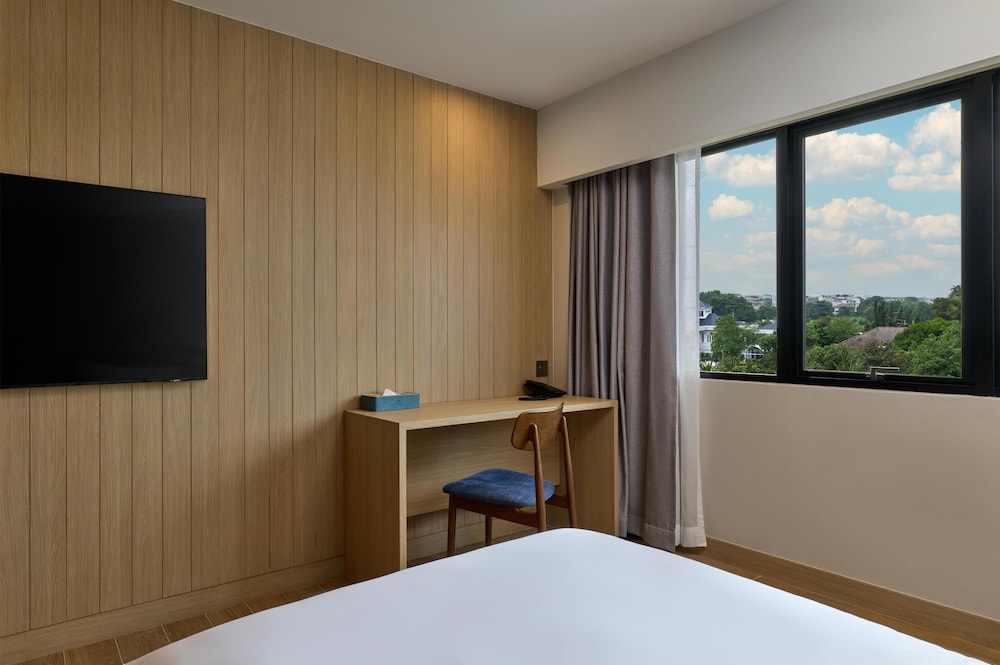 Su ubicación privilegiada, con excelentes conexiones por carretera, permite un fácil acceso al centro de Bangkok y a los principales distritos financieros. Los huéspedes se encuentran a poca distancia en coche de destinos populares como el Impact Arena, el Central Plaza Chaeng Wattana, con sus cines y restaurantes, el centro comercial Ngamwongwan, el Outlet Square Muang Thong Thani y el Pantip Plaza Ngamwongwan, perfectos para ir de compras y disfrutar del ocio. Las habitaciones están cuidadosamente diseñadas para los viajeros de hoy en día, ofreciendo wifi de alta velocidad gratuito, televisores inteligentes, espacios de trabajo ergonómicos, minineveras, cafeteras y teteras, ropa de cama de alta calidad y climatización individual. Entre los servicios adicionales se incluyen un gimnasio totalmente equipado, salas de reuniones versátiles, aparcamiento gratuito para huéspedes y servicio de recepción 24 horas, lo que garantiza que cada estancia sea cómoda y práctica.