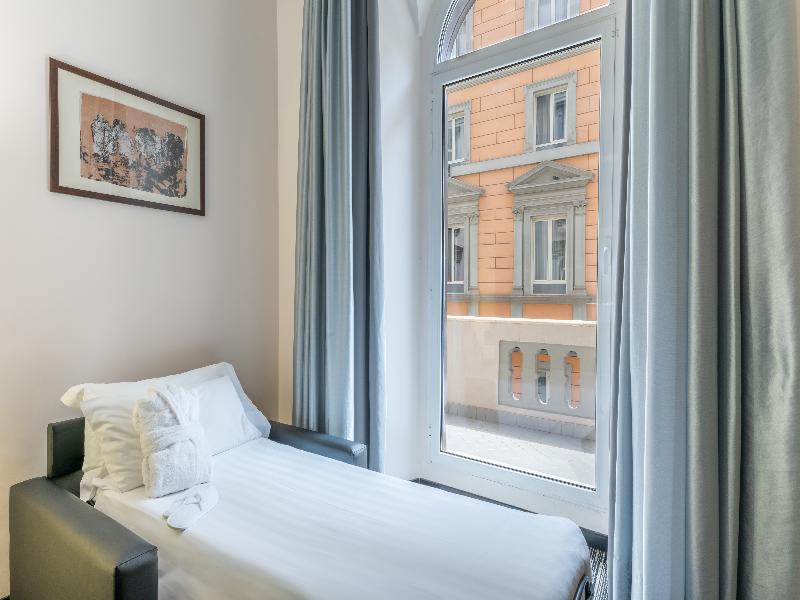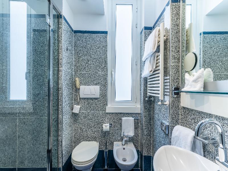A pocos metros de Termini. Habitación amplia y cómoda. Cama gigante. Un baño muy amplio y comodo. El desayuno es realmente espectacular, hay absolutamente todo lo que quieras.