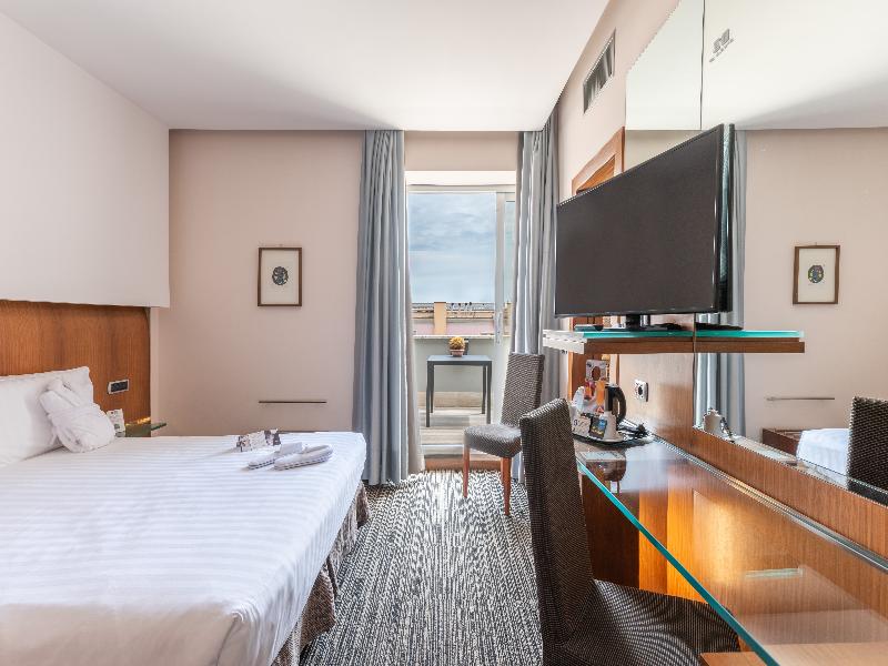 El Best Western Plus Universo es un hotel de 4 estrellas situado muy cerca de la estación de Termini y del Teatro dell’Opera. El hotel dispone de 197 habitaciones de alta calidad y confort, y de un moderno Centro de Conferencias que ofrece 10 salas de reuniones con una capacidad total de 700 participantes, pantalla LED y los equipos y tecnologías más modernos para la celebración de convenciones, conferencias, talleres y eventos a medida. También ofrece servicios adicionales como la azotea, una zona de bienestar (gimnasio, sauna, baño turco) y el restaurante Four Seasons. Si no está incluido en la tarifa, el desayuno se puede adquirir al hacer el check-in por 18 € por persona y noche.