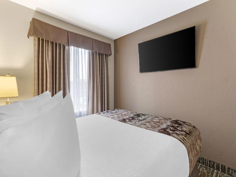 Considerado uno de los mejores hoteles de Winnipeg y ganador reiterado del Certificado de Excelencia de TripAdvisor, el Best Western Plus Pembina Inn & Suites se encuentra a pocos minutos del animado distrito de Forks y cautiva a sus visitantes con un ambiente sofisticado y una gran variedad de servicios de alta gama. Disfruta de hermosas habitaciones bien equipadas con sábanas impecables, camas cómodas y zonas de estar relajantes. Relájate viendo una película o un partido en televisores de pantalla plana de 37 pulgadas y aprovecha ventajas como microondas, refrigerador, escritorio, plancha y tabla de planchar. Si te alojas en una suite, podrás disfrutar de un comedor y un dormitorio independiente. ¿Tienes hambre? Comienza el día con nuestro desayuno gratuito ampliado, que incluye huevos revueltos, salchichas y papas fritas. Manténte conectado con el internet de alta velocidad gratuito o termina tu trabajo en nuestro centro de negocios. Recarga energías en nuestra sala de fitness bien equipada, date un chapuzón en nuestra piscina cubierta o relájate en el jacuzzi. Celebra tu próxima recepción o evento en nuestra sala de reuniones. Nuestro hotel ecológico y que admite mascotas en Winnipeg, MB, se encuentra a poca distancia de restaurantes que sirven filetes, pizzas, gyros y mucho más. ¿Listo para la aventura? El centro de la ciudad está a solo minutos y alberga lugares de entretenimiento, parques, paseos fluviales y renombrados museos y parques históricos. ¿Quieres estirar las piernas? El extenso Assiniboine Park está a solo unos kilómetros y alberga un zoológico, jardines, áreas de juegos y mucho más. La Universidad de Manitoba está a solo cinco minutos. Nuestro personal cálido y acogedor espera hacer que tu próximo viaje a Winnipeg sea memorable.