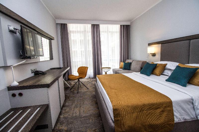 El Best Western Plus Premium Inn es un hotel de 4 estrellas ubicado en pleno corazón de Sunny Beach y a poca distancia de la famosa calle Flower Street. A sólo unos pasos del hotel encontrará una gran variedad de establecimientos para ir de compras, restaurantes y locales de ocio.Nuestro equipo de profesionales le da la bienvenida en el Best Western Plus Premium Inn con un ambiente cordial y un atento servicio. Las elegantes habitaciones de nuestro hotel están decoradas en estilo contemporáneo y cuentan con acceso gratuito a Internet Wi-Fi, cafetera y tetera gratuitas, grandes ventanales, aire acondicionado, nevera, televisores con pantalla plana y canales vía satélite, caja fuerte y un moderno cuarto de baño con todos los servicios necesarios durante su viaje.En nuestro hotel encontrará también una zona de desayunos, nuestro restaurante y el City Bar situado junto al salón de la recepción del hotel en un elegante y apacible entorno. Durante el día, los huéspedes podrán disfrutar de la piscina con tumbonas y una completa gama de servicios, así como dos toboganes acuáticos y piscina infantil con su propio tobogán acuático.A la hora de disfrutar de una experiencia realmente inolvidable y vibrante, los huéspedes podrán visitar el salón de juego del hotel con más de 50 máquinas tragamonedas y ruletas electrónicas.