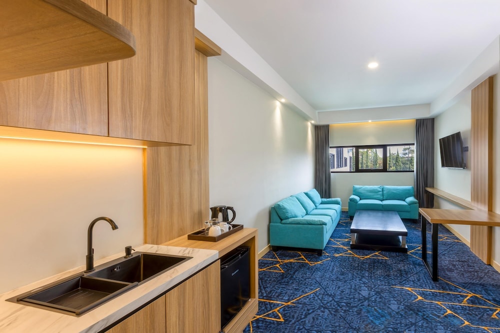 Las instalaciones y servicios incluyen recepción 24 horas, ascensor, personal multilingüe, caja fuerte (en recepción), aparcamiento, sala de reuniones/banquetes, restaurantes y wifi gratuito.La habitación cuenta con aire acondicionado, minibar, escritorio, televisión por cable o satélite, secador de pelo y teléfono.Dirección: Jl. Dr. Setiabudi n.° 272, Setiabudi Bandung.