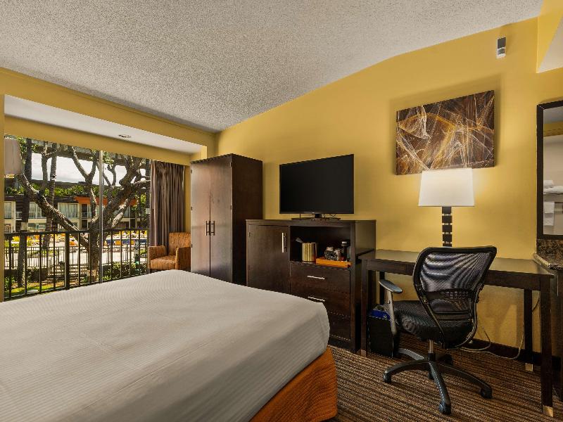 Tanto si viajas por negocios como por placer, Best Western The Plaza Hotel es el hotel perfecto cerca del aeropuerto de Honolulu para alojarte durante tu visita a Oahu. Entre los hoteles ecológicos de Honolulu, Best Western The Plaza Hotel cuenta con 274 habitaciones renovadas con todas las comodidades del hogar, incluyendo microondas, minirrefrigerador, televisión por cable vía satélite, acceso gratuito a internet inalámbrico de alta velocidad, una relajante piscina al aire libre y un desayuno buffet de lujo gratuito todos los días de 7:00 a 9:00 h. No hay mejor manera de experimentar la hermosa isla de Oahu. ¡Haz tu reserva en línea hoy mismo para empezar a planificar tu estancia en Best Western The Plaza Hotel! Disfruta de tu estancia.