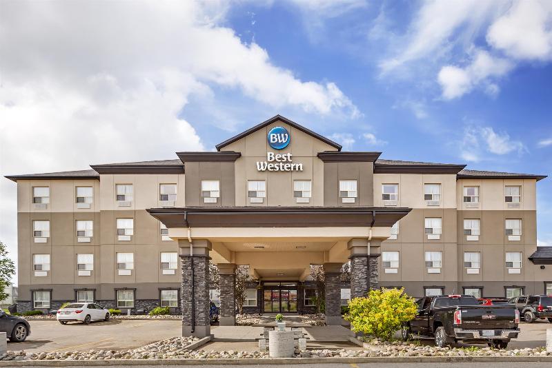 Aprovecha las opciones de recreación, como un gimnasio abierto las 24 horas, o otras comodidades, como acceso inalámbrico a internet de cortesía y servicios de conserjería. Este hotel también cuenta con una chimenea en el vestíbulo, un salón de banquetes y una máquina expendedora. Se sirve un desayuno continental gratuito todos los días de 6:00 a 9:00. Tendrás a tu disposición un centro de negocios abierto las 24 horas, check-out exprés y recepción disponible las 24 horas. Hay un aparcamiento sin asistencia gratuito disponible en el mismo hotel. Ponte cómodo en una de las 85 habitaciones con aire acondicionado, refrigerador y televisor LCD. Tu cama viene con ropa de cama de primera calidad y todas las habitaciones están equipadas con sofá cama. El acceso a internet por cable e inalámbrico de cortesía te mantiene conectado, y la programación digital proporciona entretenimiento. Los baños privados disponen de artículos de tocador gratuitos y secadores de pelo. Las distancias se muestran con una precisión de 0. 1 millas y kilómetros. Bevans Park and Natural Area - 0. 3 km / 0. 2 mi- Wallace Park - 1. 8 km / 1. 1 mi- Wainwright Golf Club - 1. 9 km / 1. 2 mi- Memorial Clocktower - 2. 7 km / 1. 7 mi- Wainwright Museum - 2. 8 km / 1. 7 mi- Petroleum Park - 2. 9 km / 1. 8 mi- Wainwright Rail Park - 3. 2 km / 2 mi. El aeropuerto recomendado para Best Western Wainwright Inn & Suites es Edmonton Intl. Airport (YEG) - 216. 4 km / 134. 5 mi. Si te hospedas en Best Western Wainwright Inn & Suites en Wainwright, estarás a 3 minutos a pie de Bevans Park and Natural Area y a 5 minutos en auto de Wainwright Golf Club. Este hotel con certificación ecológica está a 1. 9 km (1. 2 mi) de Wallace Park y a 2. 8 km (1. 7 mi) de Petroleum Park.