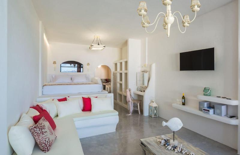 The Black Diamond Suites, una casa de huéspedes solo para adultos en Santorini, ofrece una estancia relajante cerca de la playa. Disfruta de wifi gratuito, servicio de conserjería y servicio de habitaciones con horario limitado. Empieza el día con un desayuno continental servido de 8:00 a 10:00 h. Cada una de las cuatro habitaciones con aire acondicionado cuenta con frigorífico, Smart TV y un patio privado amueblado. En los baños encontrarás artículos de aseo de diseño y secador de pelo. La casa de huéspedes está convenientemente ubicada a poca distancia en coche de Santorini Caldera, Red Beach y otras atracciones. Hay un servicio de traslado de ida y vuelta al aeropuerto disponible por un suplemento, y se ofrece aparcamiento gratuito en las instalaciones.
