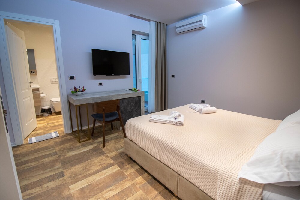 Si decides alojarte en Blue Marine Hotel de Durres, estarás a pie de playa, a 8,3 km de Torre de Durrës y a 8,6 km de Anfiteatro de Durrës. Además, este hotel de playa se encuentra a 32,1 km de Castillo de Preze y a 34,8 km de Epoka University. Te sentirás como en tu propia casa en cualquiera de las 53 habitaciones con aire acondicionado y minibar. La conexión a Internet wifi gratis te mantendrá en contacto con los tuyos; también podrás ver tu programa favorito en el televisor con canales por satélite. El baño privado con ducha está provisto de artículos de higiene personal gratuitos y secador de pelo. Entre las comodidades, se incluyen caja fuerte y escritorio, además de un servicio de limpieza disponible todos los días. Con una terraza donde descansar y comodidades como conexión a Internet wifi gratis, ¡no te faltará de nada! Prueba deliciosos platos sin moverte de este hotel, que cuenta con un restaurante y ofrece servicio de habitaciones con horario limitado. Todos los días se sirve un desayuno continental gratuito. Tendrás servicio de recepción 24 horas, consigna de equipaje y caja fuerte en recepción a tu disposición. Hay un aparcamiento sin asistencia gratuito disponible.