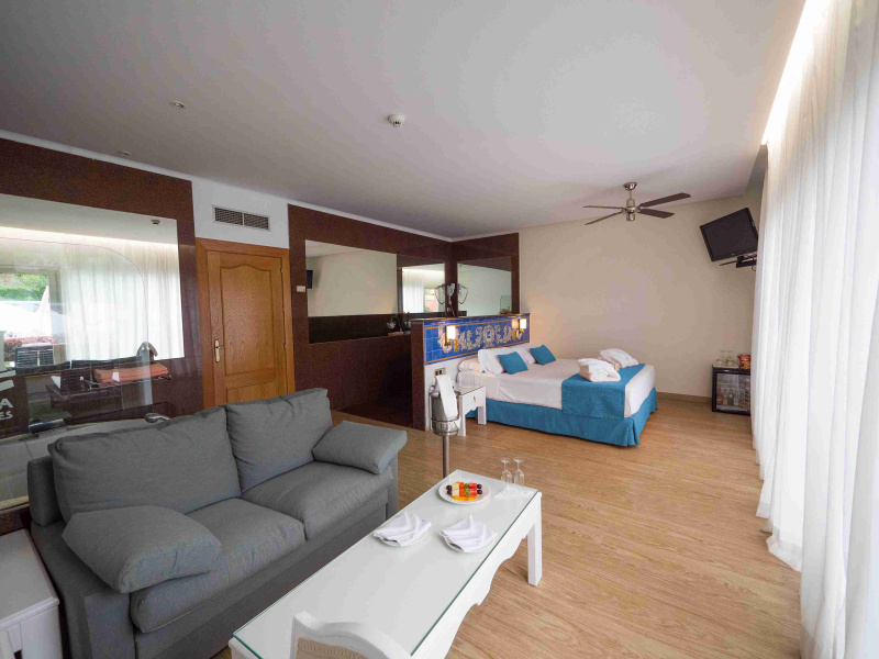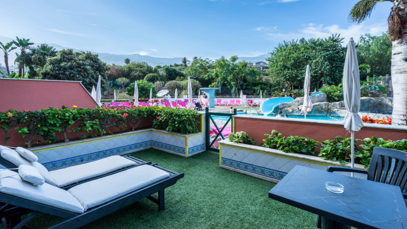 El Blue Sea Costa Jardin en Tenerife se encuentra situado en la zona norte de la isla de Tenerife, en una tranquila urbanizacion a 2 kilometros del centro del Puerto de la Cruz y del complejo de piscinas y lago artificial Martianez, muy cerca del Jardin Botanico. El hotel dispone de 15.000m2 de jardines . Hay una piscina con toboganes, hamacas de piscina, zona de juegos (minigolf, petanca, pingpong, shuffle board) y un gimnasia.El hotel dispone de restaurante buffet, el cual requiere vestimenta adecuada para la cena.Dispone ademas de TV satelite en todas las habitaciones, aire acondicionado, ventilador de techo y bano con secador de pelo, WIFI Grati, y caja fuerte.Relajese en el magnifico Spa And Wellness Aquaplaya donde podra disfrutar del circuito de aguas asi como elegir cualquier tipo de tratamientos personalizados.El excelente equipo de animacion presenta un amplio programa de actividades, shows y espec taculos para todas las edades. Para los mas pequenos el hotel pone a su uso y disfrute un salon con television, un parque infantil y una zona de juegos. Todo incluido de 10h a 23h.Por favor tener en cuenta que algunas instalaciones pueden incurrir en cargas locales adicionales.