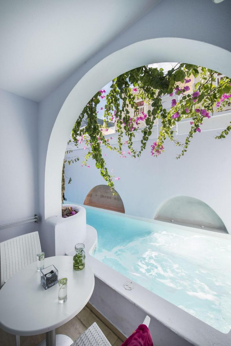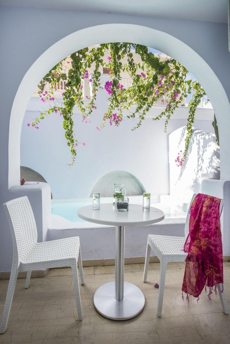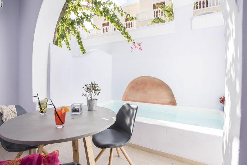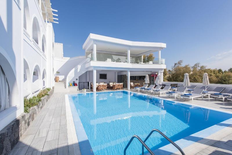 Santorini es uno de los destinos más deseados de Europa, una isla bañada por el sol con impresionantes paisajes, playas de arena negra y magníficas puestas de sol. Este fabuloso hotel contemporáneo es un lugar de vacaciones tranquilo y relajante, ideal para parejas, a solo 30 metros de la famosa playa de Kamara. La localidad de Kamari es un remanso de paz a tan solo 5 km del aeropuerto internacional de la isla, que ofrece innumerables opciones de entretenimiento y ocio, así como restaurantes y tabernas que sirven cocina tradicional griega y mediterránea. Los huéspedes de este hotel renovado, que combina lo mejor de Grecia con un estilo contemporáneo, pueden disfrutar de una copa en la espaciosa terraza después de un refrescante baño en la piscina con vistas al mar. El alojamiento se ofrece en apartamentos, suites junior y suites luminosos, bien amueblados y equipados, con bañera de hidromasaje o piscina privada.
