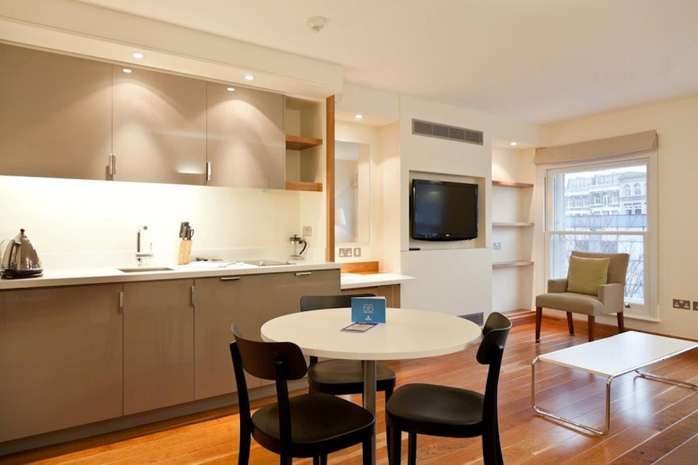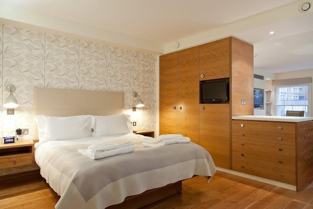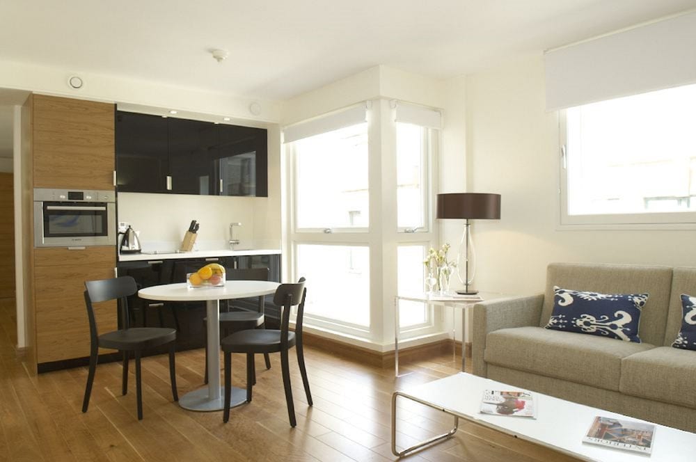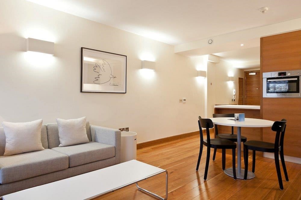 These chic and modern apartments offer iPod docks, spacious living areas and fitted kitchens in London’s Clerkenwell district. King’s Cross Station and St. Paul’s Cathedral are a 20-minute walk away.With wooden floors and comfortable sofas, each stylish living area features a flat-screen TV with DVD player and free Wi-Fi. There is also a dining area with a table and seating for 4.Each kitchen includes modern decor, with a fitted oven and hob for cooking. Guests can also make use of a microwave, refrigerator, and dishwasher.Farringdon Rail and Underground Station is just 5 minutes’ walk away, and bustling Exmouth Market is a 10-minute walk. The famous jewellery of Hatton Garden is 5 minutes’ walk away.