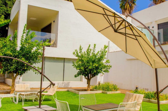 Descubre las suites Dimona en la playa de la Carihuela, Torremolinos. Equipadas con cocina, grandes camas, zona de estar, terraza propia, con cuidada calidad y confort. Descansa en una de las tumbonas del jardín, disfruta de la ducha cascada o entrena en la sala de fitness. Cualquier excusa valdrá para volver.