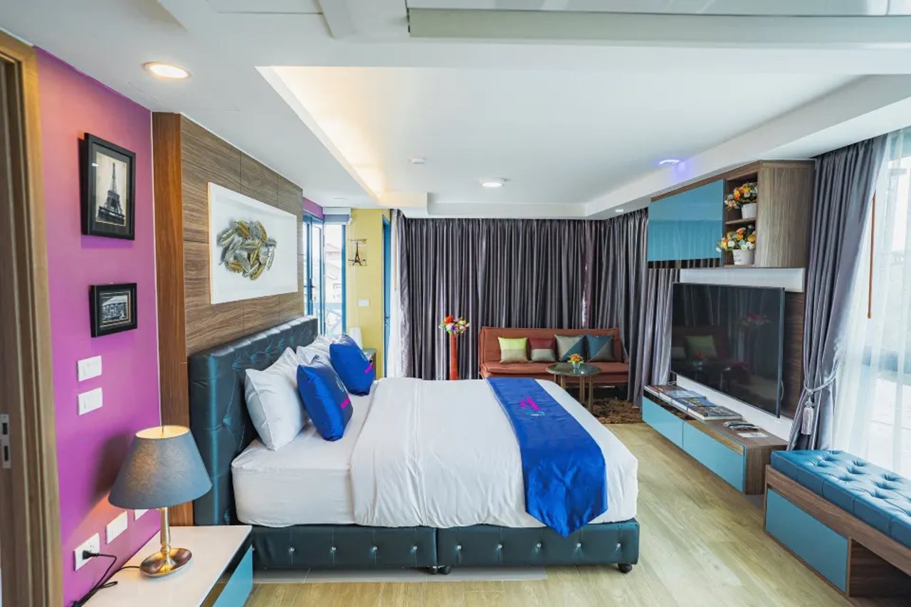 Alojándote en Bluetel Residence Tiwanon Station estarás en pleno corazón de Nonthaburi, en una ubicación muy conveniente para llegar a lugares como Ministerio de Salud Pública o Parque Makutromsaran. Este aparthotel de 4 estrellas se encuentra muy cerca de Centro comercial Central Plaza Rattanatibet y Centro comercial The Mall Ngamwongwan.Habitaciones Disfruta de una estancia fabulosa en una de las 9 habitaciones con decoraciones diferentes, todas equipadas con chimenea y televisor LED. Las camas cuentan con colchones con una capa de acolchado adicional y sábanas de algodón egipcio para descansar plácidamente. Las habitaciones ofrecen también un sofá cama de matrimonio. La cocina básica está equipada con frigorífico/congelador grande, placa de cocina y microondas. Tendrás conexión a Internet por cable y wifi gratis, estación de conexión para iPod y televisión digital para tus momentos de ocio. Sumérgete en una de las 2 piscinas al aire libre y 2 bañeras de hidromasaje, o disfruta de las demás instalaciones recreativas, como centro de bienestar, entre otras. Encontrarás también conexión a Internet wifi gratis y área de picnic.Para comer Aprovecha el servicio de habitaciones con horario limitado de este aparthotel, o compra algo para comer en su supermercado. Todos los días se sirve un desayuno a la carta gratuito.Servicios de negocios y otros Tendrás centro de negocios, check-in rápido y servicio de tintorería a tu disposición. Pagando un pequeño suplemento podrás aprovechar prestaciones como servicio de transporte desde el hotel hasta el aeropuerto con horario limitado y aparcamiento sin asistencia gratuito.