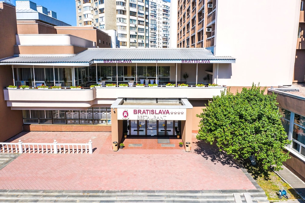 El Hotel Bratislava se encuentra a 10 km del centro, a 11 km de la Catedral de San Vladimir y a unos 34 km del aeropuerto.Las instalaciones del hotel incluyen recepción abierta las 24h, restaurante, bar, sala de conferencias, caja fuerte (con cargo extra), sala de equipajes y aparcamiento (con cargo extra).Las habitaciones están equipadas con cuarto de baño (bañera / ducha), TV, teléfono, aire acondicionado y conexión inalámbrica a Internet.Dirección: A. Malyshka's 1 Street, 02192 Kiev, Ucrania.