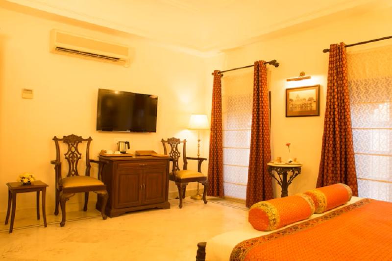 Disfruta de una experiencia rejuvenecedora en nuestro spa, que ofrece masajes y tratamientos faciales. Mantén tu rutina de ejercicios en nuestro gimnasio completamente equipado y relájate después en el baño de vapor. Disfruta de wifi y servicios de conserjería gratuitos durante toda tu estancia. Saborea deliciosas comidas en nuestro restaurante o toma un refrigerio rápido en la cafetería. También ofrecemos servicio de habitaciones las 24 horas para mayor comodidad. Para una llegada y salida sin complicaciones, aprovecha nuestros servicios de check-in y check-out exprés. Hay periódicos gratuitos disponibles en el vestíbulo. Un servicio de transporte al aeropuerto está disponible 24/7 por un suplemento. Nuestras 32 habitaciones ofrecen un refugio confortable, cada una con minibar, televisor de pantalla plana con programación por cable y wifi gratuito. Los baños privados incluyen duchas de efecto lluvia y artículos de tocador de diseño. Las comodidades adicionales incluyen teléfono, caja fuerte y escritorio. Ubicado en la orilla del río en Varanasi, BrijRama Palace está a pasos de Dasaswamedh ghat y a 11 minutos a pie de Hanuman Ghat. Este hotel de lujo está convenientemente cerca del Kashi Vishwanath Temple (1, 4 km) y de Asi Ghat (2, 4 km). El aeropuerto principal más cercano es Varanasi (VNS-Lal Bahadur Shastri), a 25, 9 km de distancia.
