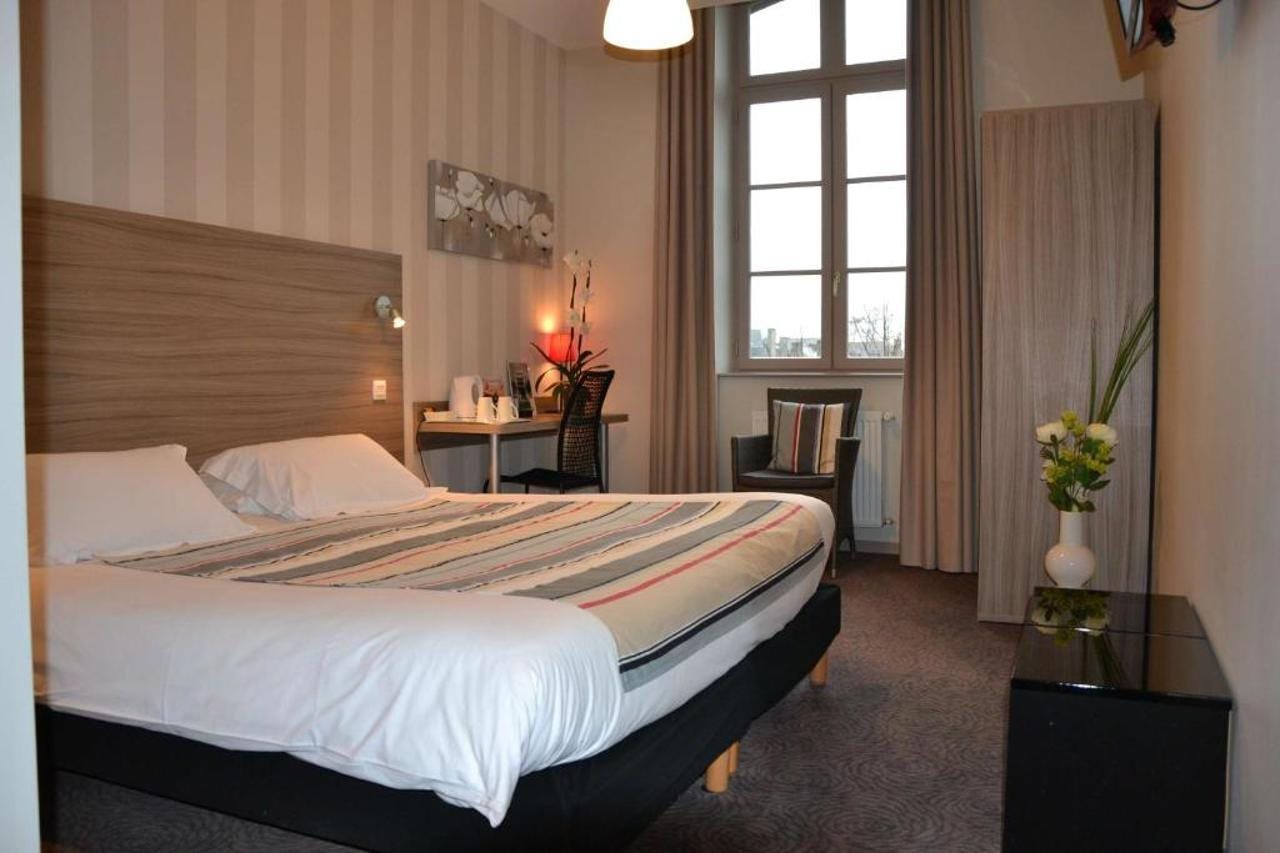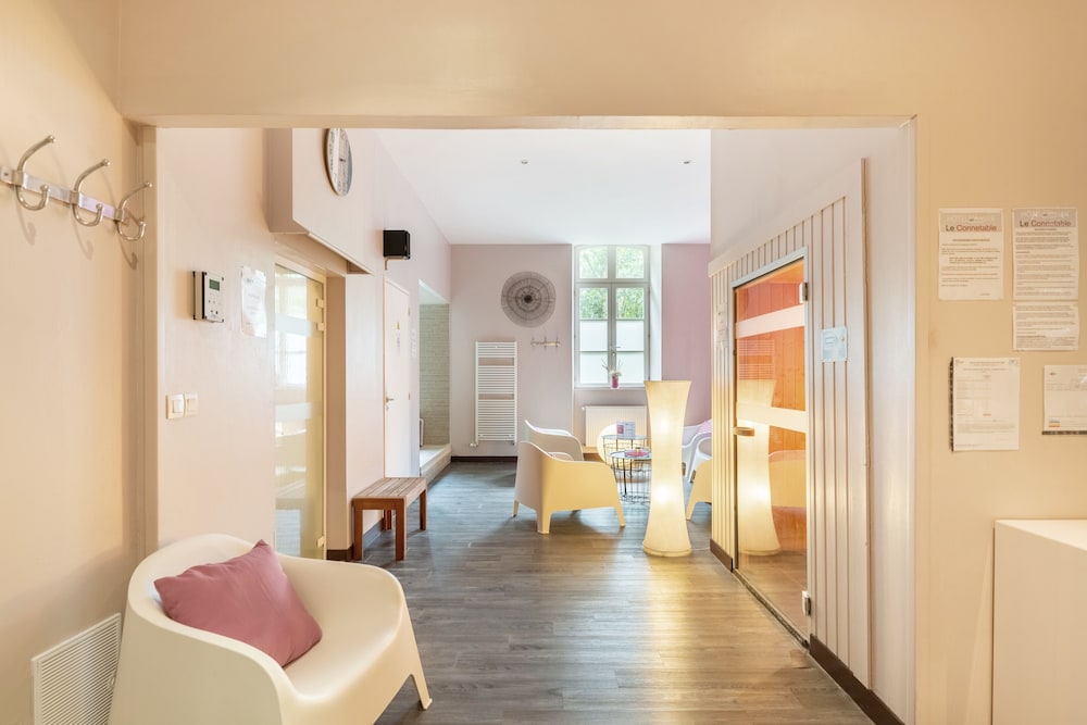 Facilities and services included free Wi-Fi, air conditioning, multilingual staff, bar, disabilities facilities, sauna, Room features free Wi-Fi, air conditioning, television, desk and hairdryer.Address: 8, Avenue Rene Cassin 22100 Dinan, France.