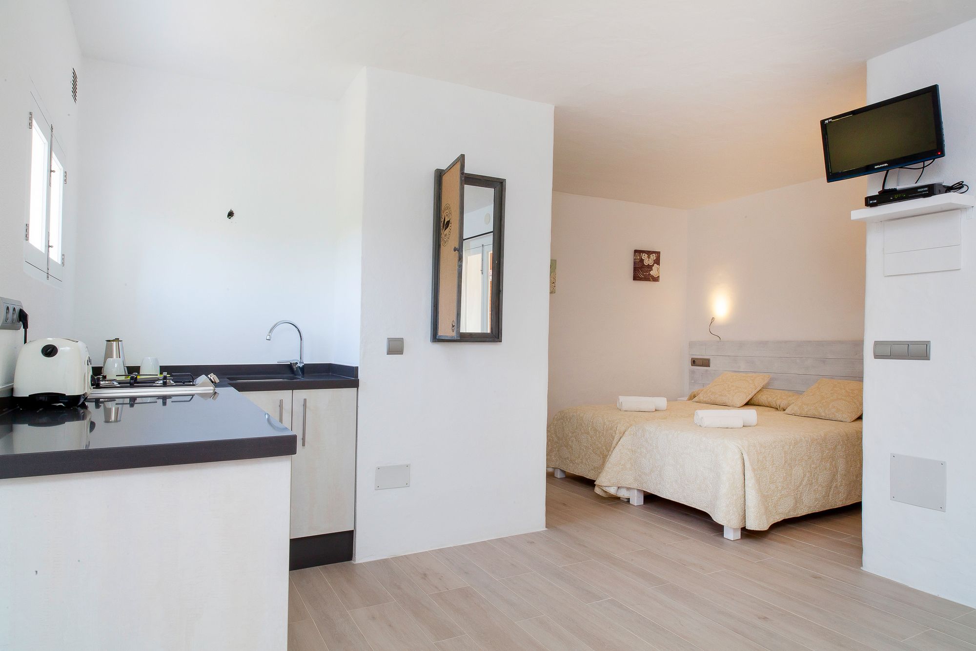 Bungalows Sa Sargantana de Formentera está a menos de diez minutos en coche de Museo Etnológico de Formentera y Iglesia de San Francisco Javier. Además, este apartamento se encuentra a 4,6 km de Playa Cala en Baster y a 5,9 km de Playa de Es Pujols. Reserva una de las 9 habitaciones con cocina, frigorífico/congelador grande y placa de cocina, y disfruta de una estancia inolvidable. Hay un aparcamiento sin asistencia gratuito disponible.