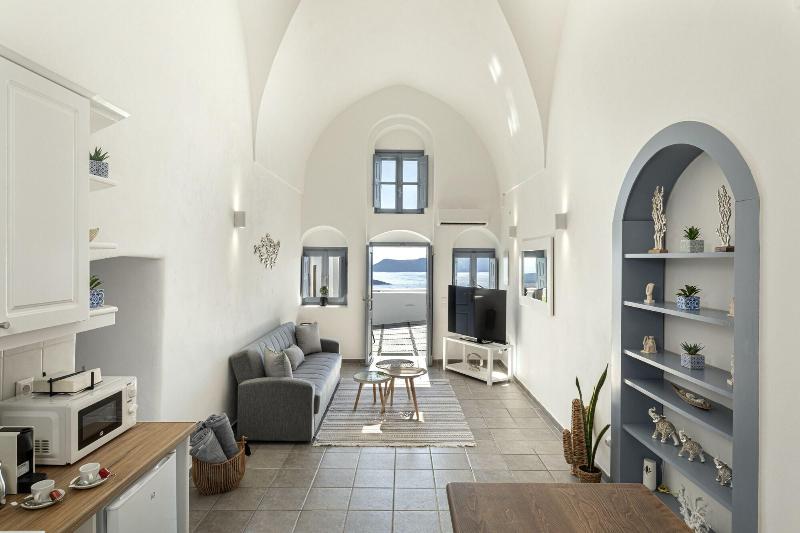Disfruta de impresionantes vistas desde la terraza y el jardín en Caldera Senses, una encantadora casa de huéspedes con una ubicación céntrica en Santorini. Mantente conectado con el wifi gratuito y disfruta de refrigerios de la tienda de delicatessen del establecimiento. Cada una de las tres habitaciones con aire acondicionado cuenta con un televisor de pantalla plana de 40 pulgadas con canales por satélite, una cama con pillow-top y un baño con ducha tipo lluvia. La casa de huéspedes también ofrece servicios de limpieza en seco/lavandería y guardaequipaje. Hay un servicio de traslado de ida y vuelta al aeropuerto disponible por un suplemento. A poca distancia en coche de la Caldera de Santorini (2 minutos) y del puerto de Athinios (11 minutos), Caldera Senses te sitúa cerca de las principales atracciones de Santorini.