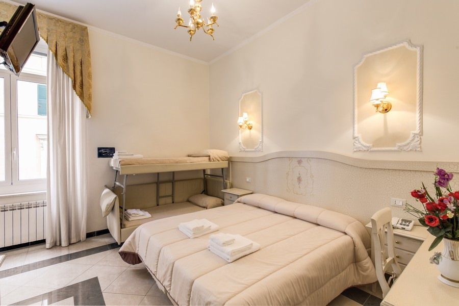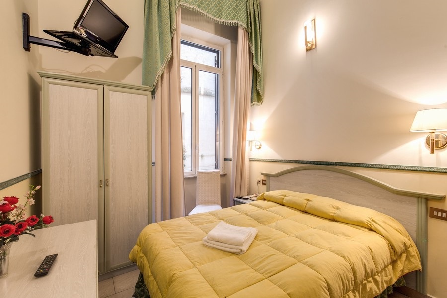 Ubicación - Este tranquilo y pulcro hotel se encuentra en una zona muy céntrica, cerca de la estación de Termini. Desde el hotel hay muy buenas conexiones, en metro o autobús, para visitar todos los sitios de interés turístico de la ciudad. En las inmediaciones encontrará una gran cantidad de tiendas, comercios y lugares de ocio. A unos 30 minutos está la playa de Ostia y el aeropuerto de Fiumicino está a 30 km.. Instalaciones - Este hotel se construyó en 1900. Los huéspedes se sentirán como en su casa en una de las 40 habitaciones. Es posible acceder a las plantas cómodamente en ascensor o bien por las escaleras. Las instalaciones incluyen una consigna para equipaje, una caja fuerte, un restaurante, una sala de desayunos, una cafetería, un bar y un centro de negocios. Gracias a la conexión Wi-Fi en las zonas públicas los huéspedes podrán mantenerse en contacto con el mundo exterior. Aquellos que viajen con vehículo propio pueden dejarlo en el aparcamiento del establecimiento.. Habitaciones - En las habitaciones hay aire acondicionado, calefacción central y un cuarto de baño. Las habitaciones disponen de cama doble o cama king size. Hay cunas para los más pequeños. Además, hay una caja fuerte, un minibar y un escritorio. Para disfrutar de una estancia agradable, también se ofrecen una nevera y una mini nevera. Hay un set de plancha para mayor comodidad de los huéspedes. Para que el huésped disfrute de un confort óptimo, se ofrecen conexión a Internet, un teléfono, un televisor y Wi-Fi. Una ducha y una bañera se incluyen en el equipamiento de los cuartos de baño. Las comodidades incluyen un secador de pelo.. Deporte y ocio - Las actividades deportivas y de ocio completan la oferta del alojamiento. La bañera de hidromasaje en la zona de baño promete una relajación total. Los huéspedes del hotel pueden aprovechar el spa (por un cargo extra). Comidas - Se puede reservar alojamiento con desayuno. De forma opcional, es posible reservar desayuno. Además, el establecimiento cuenta con ofertas gastronómicas especiales.. Tarjetas de crédito - En el alojamiento se aceptan las siguientes tarjetas de crédito: American Express, Visa, Diners Club y MasterCard..