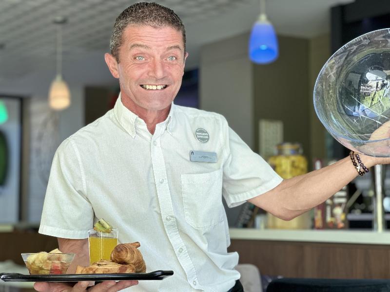 Un empleado en total para el restaurante para el desayuno y la recepción. 30 minutos sin pan, vasos, cubiertos, queso, y así sucesivamente. Y COBRAN 9, 90 Euros por persona para el desayuno - ¿Por...