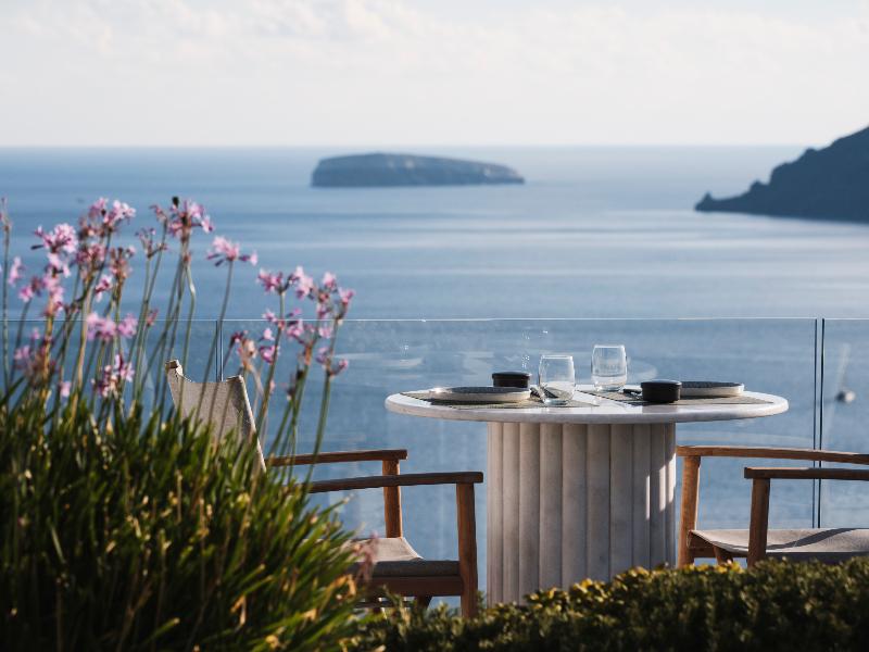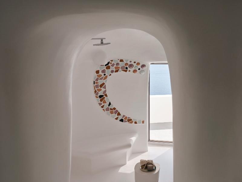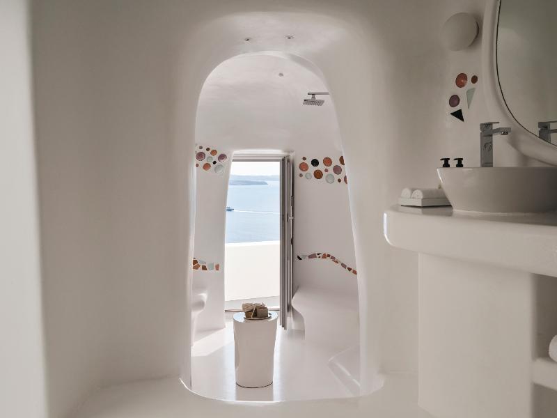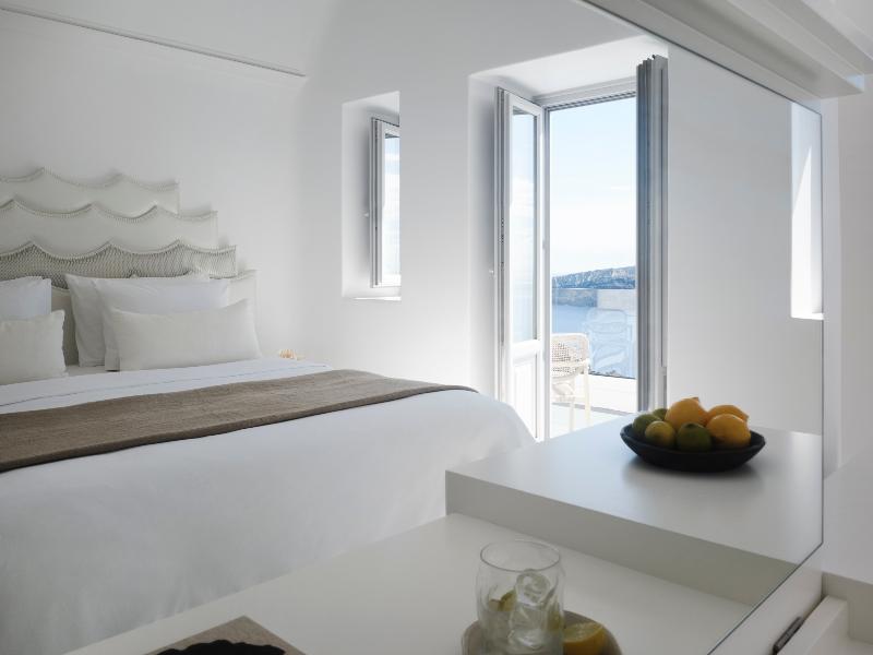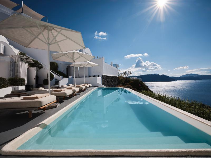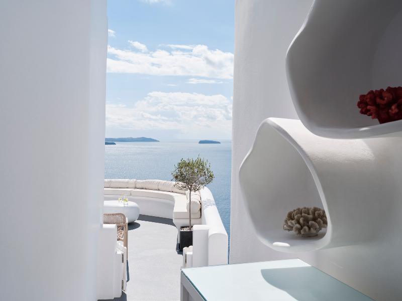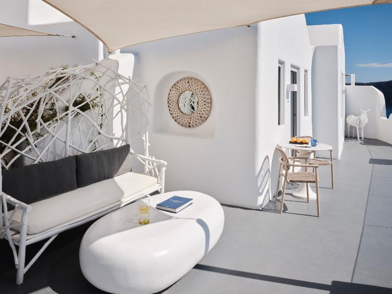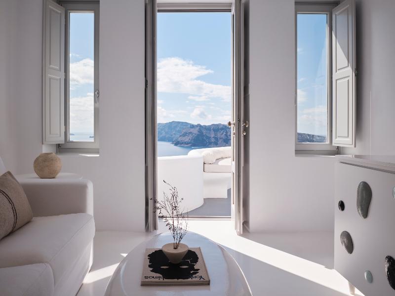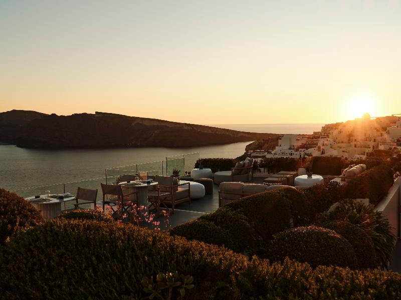 Hermoso hotel con una vista de Oia y La Caldera insuperable.