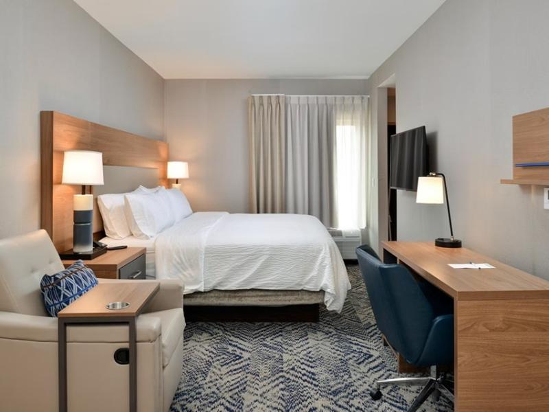 ¡Llegó el hotel para estancias prolongadas más nuevo y elegante de Joliet! Te damos la bienvenida al Candlewood Suites Joliet, el principal hotel y centro de reuniones de Joliet. Ubicado justo a la salida de la I-80 en Houbolt Road, somos el hotel para estancias prolongadas más nuevo de Joliet, ideal tanto para viajeros de negocios como de placer. Nuestro ambiente cálido y acogedor, y nuestra ubicación tranquila nos convierten en la mejor opción para alojamiento, comidas, reuniones y eventos en Joliet. Estamos convenientemente ubicados cerca de los mejores parques, museos, tiendas, casinos, instalaciones deportivas y vida nocturna de la zona. Entre las atracciones locales más populares, se incluyen Harrah's y Hollywood Casinos, los partidos de béisbol de los Joliet Slammers, Union Station, la histórica Ruta 66 y Chicagoland Speedway. Candlewood Suites Joliet es el alojamiento elegido por muchas empresas importantes. Recibimos huéspedes de negocios de la zona, como Silver Cross Hospital, Exelon, AMITA Health, ExxonMobil, GE y el Rialto Theatre. Nuestro centro de convenciones cuenta con más de 930 m² de espacio para eventos, perfecto para tu próxima reunión o evento. Con un diseño moderno y una decoración de primer nivel, comodidades de alta calidad y un servicio excepcional, ofrecemos una experiencia de estadía memorable a todos nuestros huéspedes. Nuestras suites, decoradas con buen gusto, cuentan con ropa de cama nueva de lujo, microondas, refrigeradores, televisores de 43 pulgadas, canales premium y wifi gratis. El restaurante Burger Theory sirve cervezas artesanales locales y cócteles exclusivos con hamburguesas personalizadas, elaboradas a diario con una sabrosa mezcla patentada. ¡Relájate! Estás en casa.