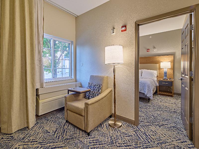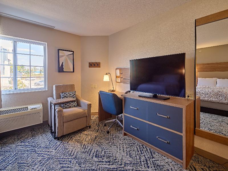 Bienvenido al Candlewood Suites Hotel cerca del centro de Peoria, Illinois Idealmente situado cerca de la I-74 y la Bradley University, nuestro alojamiento de estancias prolongadas en Peoria, IL, está muy cerca del Peoria International Airport (PIA), lo que facilita tus viajes. También estamos ubicados cerca de muchas empresas importantes, para que puedas desplazarte fácilmente hacia y desde tus reuniones. Los huéspedes de nuestras suites cerca del centro de Peoria pueden disfrutar de la proximidad de nuestro hotel a varias atracciones locales. El Peoria Civic Center y Peoria Riverfront ofrecen entretenimiento diario, ya sea para un espectáculo nocturno o un paseo matutino por el mercado de fin de semana. Para los amantes del deporte, el Shea Stadium, sede de los Bradley University Braves, está a solo minutos de distancia. Para los viajeros de negocios, nuestras suites cerca del centro de Peoria están cerca del Peoria International Airport y ofrecen acceso gratuito a Internet de alta velocidad y un centro de negocios abierto las 24 horas. Entre las empresas cercanas se incluyen OSF Center for Health, Illinois Eye Center, Bosch y Caterpillar. The Shoppes at Grand Prairie, a pocos segundos, ofrece tiendas y restaurantes de primer nivel. Si buscas hoteles que admitan mascotas en Peoria, IL, te damos la bienvenida tanto a ti como a tu mascota para que disfruten de nuestras comodidades. Con la tienda Candlewood Cupboard, servicio de lavandería gratuito para los huéspedes, un gimnasio abierto las 24 horas y un cenador con parrilla para barbacoa, nuestro Candlewood Suites Peoria Hotel at Grand Prairie te ofrece la comodidad y el confort que te mereces.