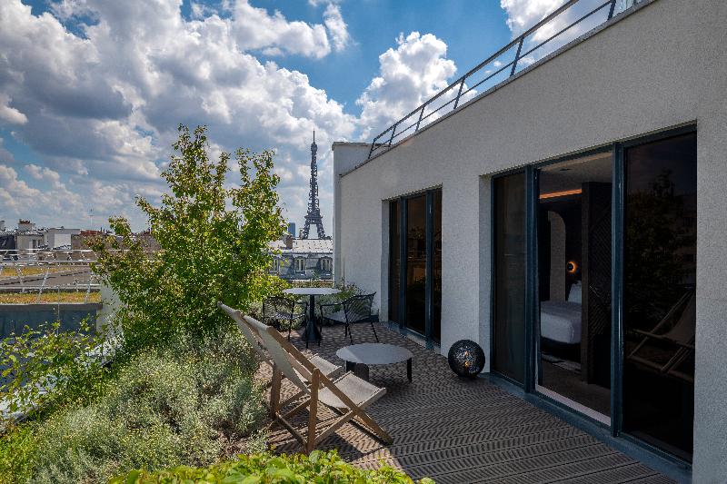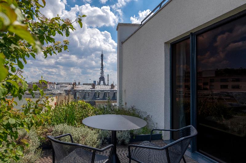 me encanto!!!! excelente ubicación y excelente servicio, un hotel recomendado para quedarse en Paris! Tiene una terraza espectacular con vista a la Torre Eiffel! El hotel tiene un Cheff de primera...