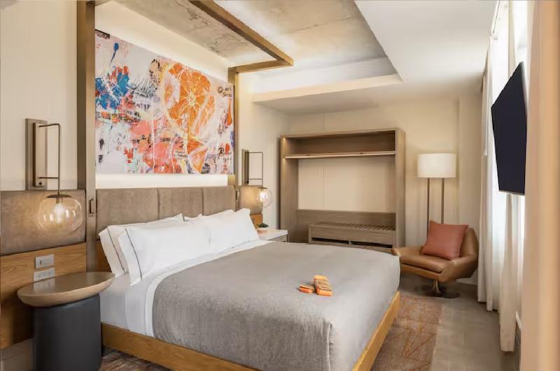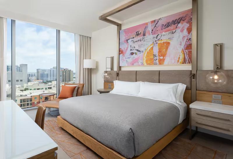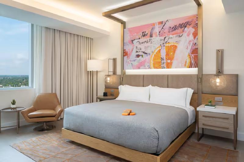 Hola y bienvenido a Canopy by Hilton West Palm Beach Downtown, un hotel nuevo, luminoso y divertido en el corazón del vibrante West Palm Beach. Con su impresionante fachada de cristal y el arte de fibra óptica que cuelga en el atrio, nuestro hotel es un destino en sí mismo y está a pocos minutos del centro de convenciones, una variada oferta gastronómica, la mejor vida nocturna, actividades frente al mar y atracciones culturales. Te daremos la bienvenida al vecindario con un obsequio local al hacer el check-in. En Canopy, lo tenemos todo cubierto. Nuestras habitaciones Just-Right tienen una decoración moderna y arte local que le da ese toque de West Palm Beach, además de las comodidades que esperas, como un televisor de alta definición de 55 pulgadas, wifi gratis, un cajón refrigerador y una cafetera Nespresso®. Nuestra exclusiva cama Canopy te ayudará a dormir plácidamente. Las habitaciones de lujo ofrecen vistas al océano o a la ciudad, mientras que nuestras suites, más amplias, incluyen una sala de estar, un dormitorio privado y detalles acogedores adicionales. Mantente hidratado con los dispensadores de agua filtrada en cada piso. Comienza el día en la cafetería con un delicioso desayuno artesanal elaborado con ingredientes frescos y productos locales o recibe una bolsa Canopy Break Fast en tu habitación. Encontrarás opciones frescas de inspiración latina y sushi en Ban. tr para el almuerzo y la cena, además de degustaciones gratuitas de comida y bebidas locales por la noche. Para disfrutar de cócteles artesanales y vistas impresionantes, sube a 13. e. v para disfrutar de una experiencia gastronómica en el bar de la azotea junto a la piscina infinita. Nuestro salón de baile flexible de 246 metros cuadrados es ideal para pequeñas reuniones, bodas y otros eventos en West Palm Beach.