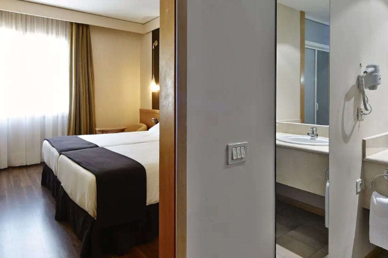 Las instalaciones del hotel incluyen un restaurante, cafetería, servicio de habitaciones, piscina, sauna, gimnasio, conexión inalámbrica a Internet en el área de recepción, servicio de lavandería, sala de reuniones, aparcamiento (con cargo extra) y recepción 24 horas Las habitaciones están equipadas con acceso a Internet (con cargo extra), cuarto de baño, aire acondicionado, caja fuerte (con cargo extra), secador de pelo, minibar, TV y teléfono. Dirección: Rua del Peregrino 29, 27600 Sarria, Lugo, Spain.