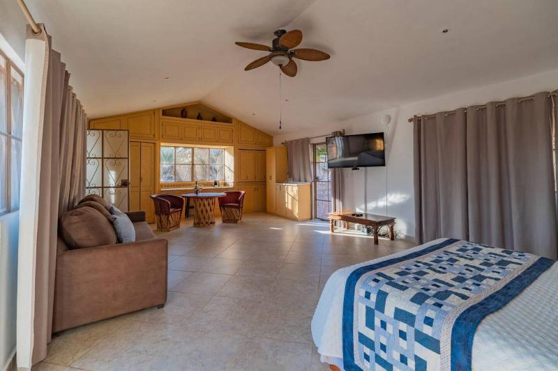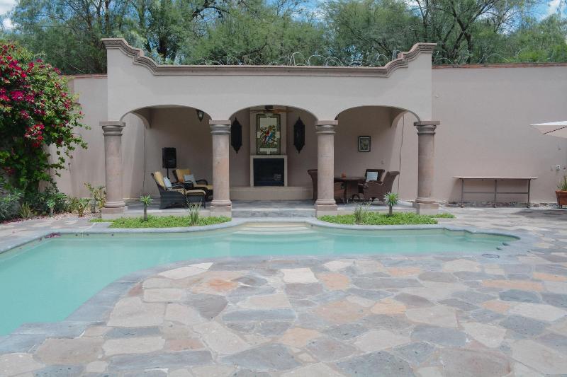 El hotel Casa Las Palmas en San Miguel de Allende ofrece una escapada relajante con piscina al aire libre y exuberantes jardines. Los huéspedes pueden disfrutar de wifi gratuito y la comodidad de un salón para banquetes. Cada una de las dos habitaciones cuenta con TV de pantalla plana con cable, ropa de cama de primera calidad y un patio privado. Los baños incluyen artículos de tocador gratuitos y secador de pelo. El hotel se encuentra a poca distancia en coche de atracciones como la Iglesia de San Miguel Arcángel y el Parque Acuático Xote. También está convenientemente ubicado cerca del Malanquin Golf Club y La Gruta Spa.