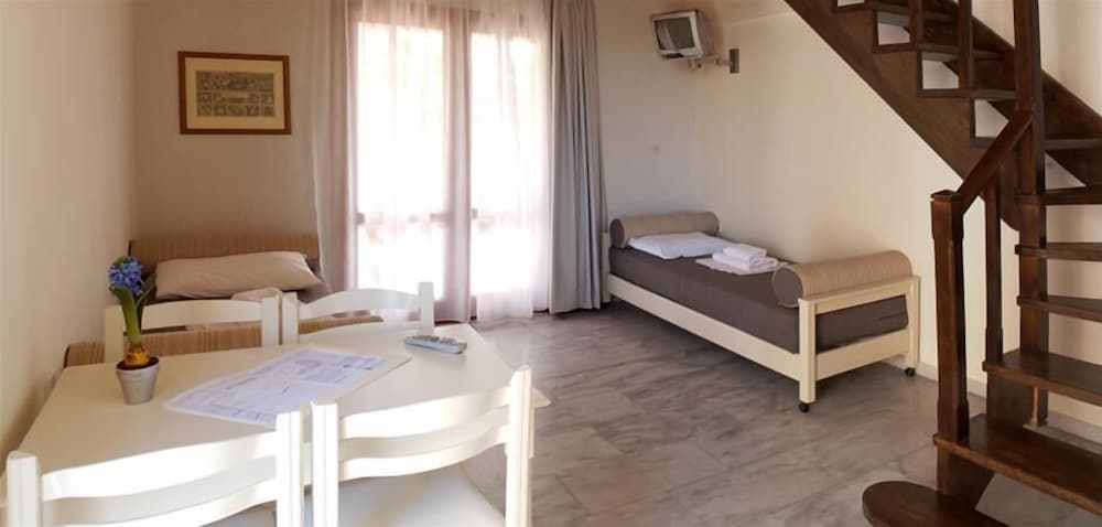 Con una fabulosa playa de 3 km bañada por aguas cristalinas, esta ciudad ofrece tiendas, tabernas y restaurantes que sirven cocina tradicional cretense y una animada vida nocturna, pero también es un paraíso de relajación para aquellos que buscan relajarse y descansar. Los apartamentos están a sólo 200 metros de la playa. Las instalaciones incluyen piscinas, incluida una para niños, un bar junto a la piscina. El amable personal está a su disposición para ayudar a los huéspedes a aprovechar al máximo sus vacaciones, organizando excursiones, alquiler de coches y bicicletas, así como eventos temáticos. Todos los espaciosos apartamentos tienen su propia cocina americana, aire acondicionado, balcón y lujosos baños.