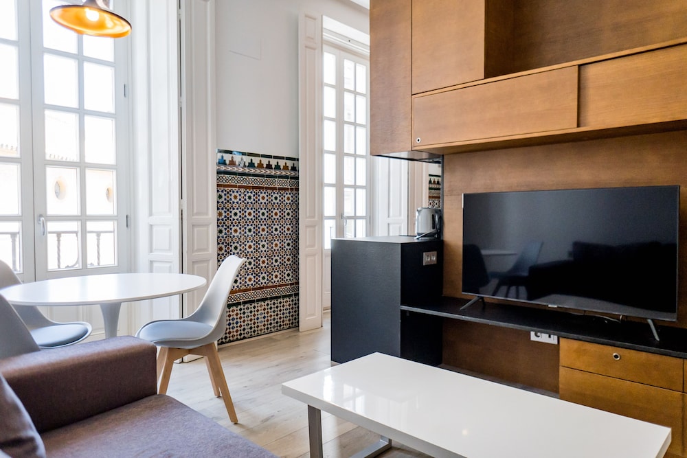 Fasiliteter og tjenester inkluderer luftkondisjonering, trådløst internett, flerspråklig personale, heis, fasiliteter for funksjonshemmede gjester, rullestoltilgang, ekspress inn-/utsjekking, turistinformasjon, concierge y skyttelservice (ekstra kostnad).Romfasiliteter inkluderer luftkondisjonering, oppvarming, trådløst internett, TV, te/kaffekoker, kjøkken, mikrobølgeovn, kjøleskap, handklær, hårføner y eget bad.Dirección: C. Conde de Ibarra, 2, Casco Antiguo, 41004 Sevilla, España.