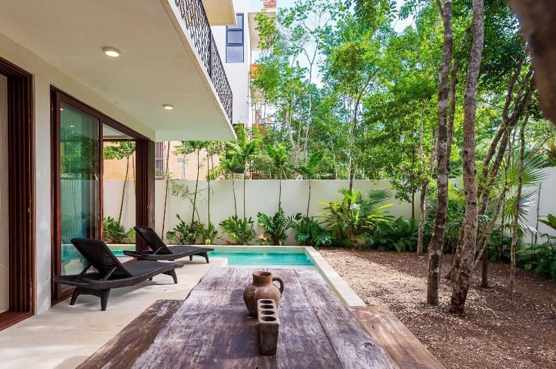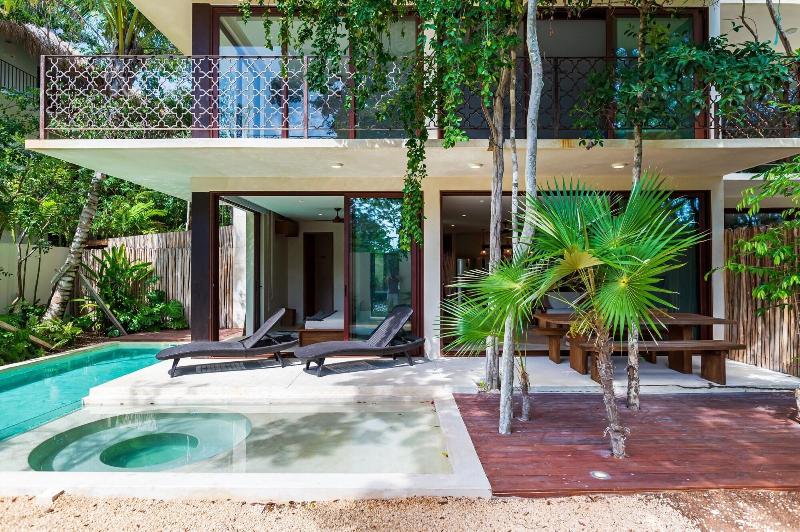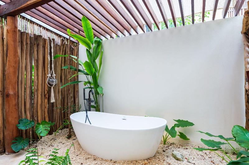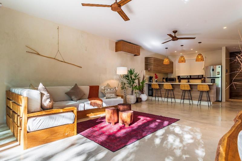 Alójate en Casa Wahh en Tulum y estarás a solo 2 minutos en coche del Parque Nacional de Tulum y a 6 minutos de Playa Paraíso. Este apartamento de 4 estrellas se encuentra a 4, 9 km de la playa de Tulum y a 5, 4 km de las ruinas mayas de Tulum. Disfruta de las vistas desde la terraza y el jardín, y aprovecha las comodidades como los servicios de conserjería. Hay aparcamiento gratuito disponible en las instalaciones. Regálate una estancia en una de las 7 habitaciones con decoración individual, que incluyen bañeras de hidromasaje privadas al aire libre y televisiones de pantalla plana. Las habitaciones disponen de patios amueblados privados. Las cocinas están equipadas con frigoríficos/congeladores grandes, hornos y microondas. El acceso inalámbrico a internet gratuito te mantiene conectado y la programación digital está disponible para tu entretenimiento.