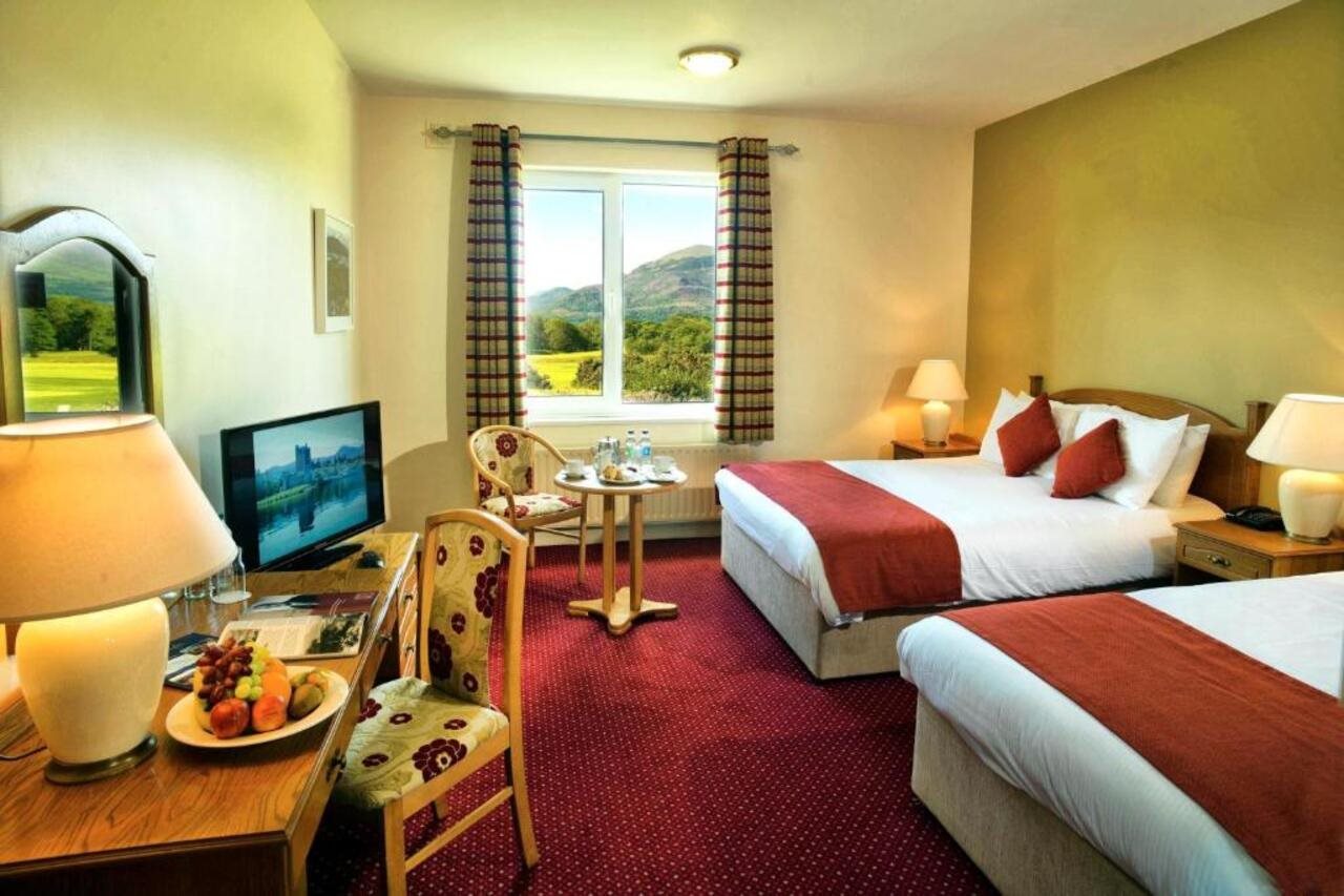 Las instalaciones y servicios incluyen restaurante, bar, aparcamiento, acceso a Internet inalámbrico, caja de seguridad en recepción, piscina cubierta, piscina infantil, gimnasio, sauna, spa (cargo extra), jacuzzi, pista de tenis, campo de golf (cargo extra) y parque infantil.Las habitaciones cuentan con calefacción, acceso a Internet inalámbrico, televisión, teléfono y baño.** Nota: Recepción con horario limitado. Indique el número de vuelo y hora estimada de llegada al hacer la reserva del hotel.**Dirección: Fossa Road, Killarney, Kerry, Irlanda.
