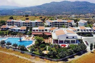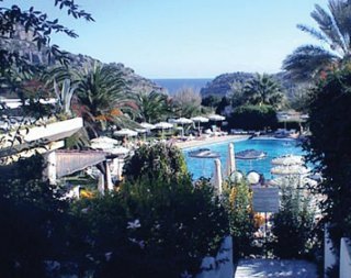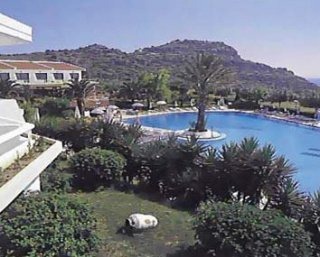 El hotel esta en la falda de una montana y tiene vistas al Mediterraneo. Esta a 650 m de la bahia de Ladiko y a 850 m de la bahia de Anthony Quinn. Faliraki esta a 2,5 km y Rodas a 17 km.El complejo consta de 6 edificios de 1 o 2 plantas, concebidos de forma que todas las 173 habitaciones tengan vistas al mar o a las montanas. Hay un vestibulo, un pequeno supermercado, una sala de TV, 2 bares, un restaurante y un parque infantil. La recepcion esta abierta 24 horas y ofrece servicio de caja fuerte, para los mas pequenos hay un miniclub. Puede alquilar coches y motos.Todas las habitaciones tienen cuarto de bano con banera y secador de pelo, aire acondicionado central, telefono de linea directa, TV via satelite o por cable, radio, nevera y un gran balcon o terraza.Hay una gran piscina al aire libre con zona infantil y bar. Hay tumbonas y sombrillas a su disposicion. A una distancia de 2,5 km hay un campo de golf.Al realizar la reserva, podra hacerlo en regimen de media pension. El desayuno y la cena se sirven en forma de bufe.