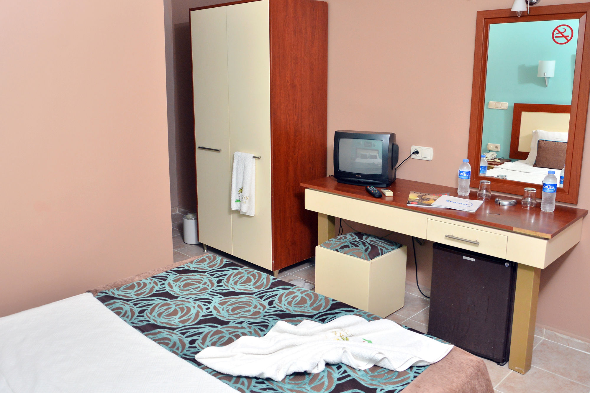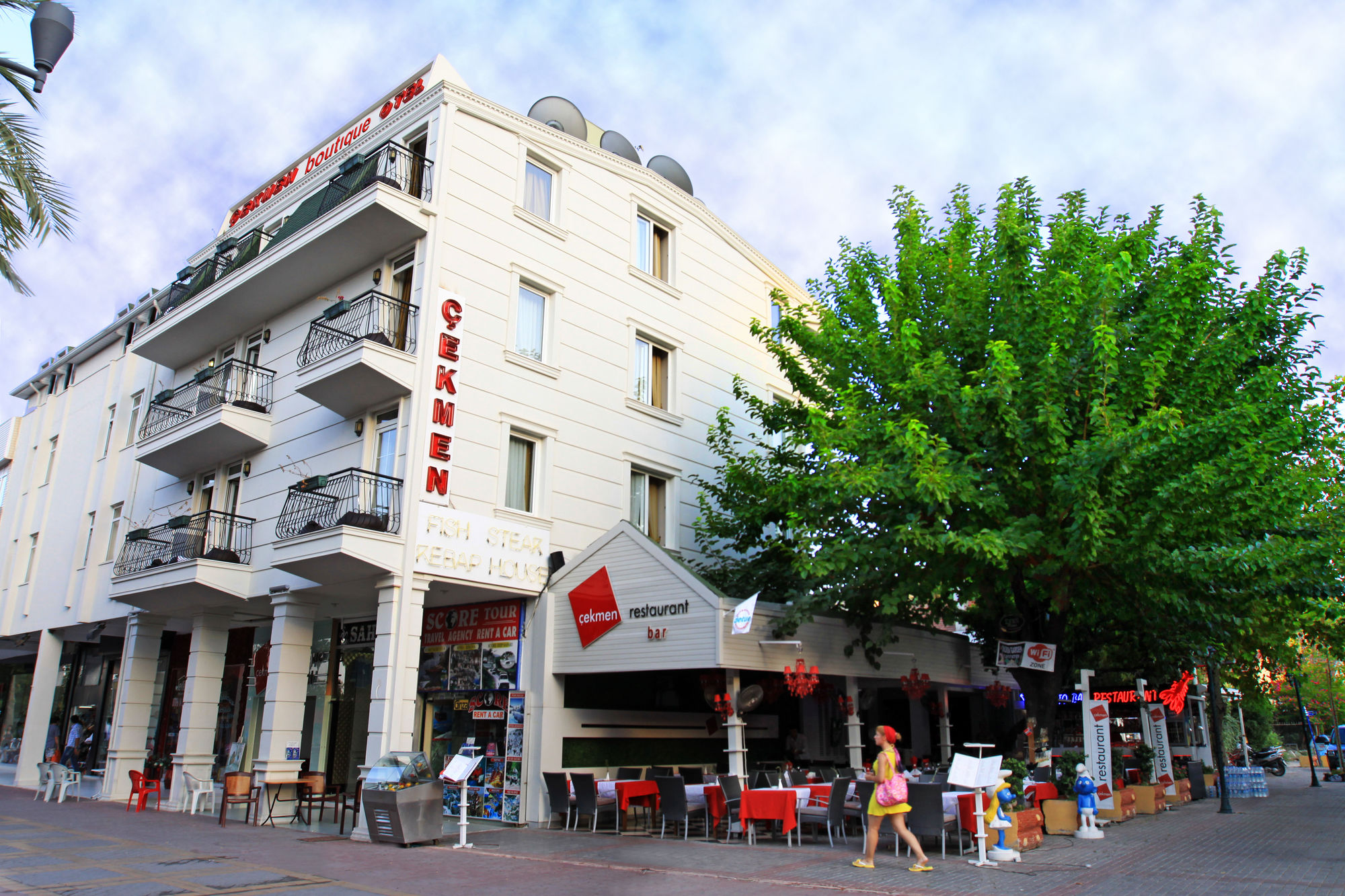 En Cekmen Hotel gozarás de una buena ubicación en Kemer, cerca de la playa, a pocos minutos de Octopus Diving Center y en las inmediaciones de Puerto deportivo de Kemer. Este hotel se encuentra cerca de Parque Temático Nómada y de Parque y playa Moonlight.Habitaciones Te sentirás como en tu propia casa en una de las 15 habitaciones con aire acondicionado y minibar. Las habitaciones disponen de balcón. La conexión a Internet wifi gratis te mantendrá en contacto con los tuyos; también podrás ver tu programa favorito en el televisor con canales por satélite. El baño privado con ducha está provisto de artículos de higiene personal gratuitos y secador de pelo.Servicios Elige entre las numerosas instalaciones recreativas ofrecidas, que incluyen discoteca y una bodega junto a las instalaciones. Se ofrece además conexión a Internet wifi gratis, servicios de conserjería y tienda de recuerdos o quiosco.Para comer Si tienes hambre, pasa por el restaurante de este hotel, que ofrece almuerzos o llama al servicio de habitaciones con horario limitado. Apaga la sed con tu bebida favorita en el bar o lounge.Servicios de negocios y otros Tendrás una zona de ordenadores, check-in rápido y periódicos gratuitos en el vestíbulo a tu disposición. Hay un aparcamiento sin asistencia gratuito disponible.
